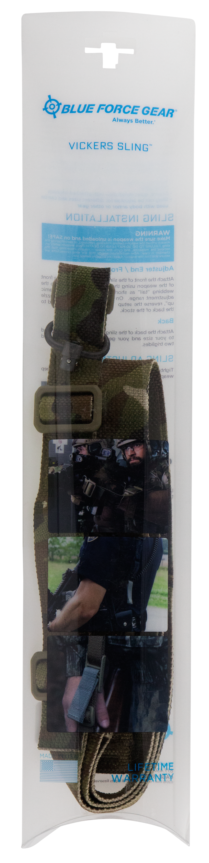 Blue force gear's vickers 221 sling allows users to switch from 2-point to 1-point mode instantly.The sling is constructed of invista solution dyed cordura webbing with itw ghilletex acetal hardware.A standard push button swivel and polymer molded burnsed socket are woven onto the allowing full adjustability.It is compatible with any weapon with two qd sling swivel sockets with the rear socket towards the end of the receiver.This unpadded model has a multicam finish.