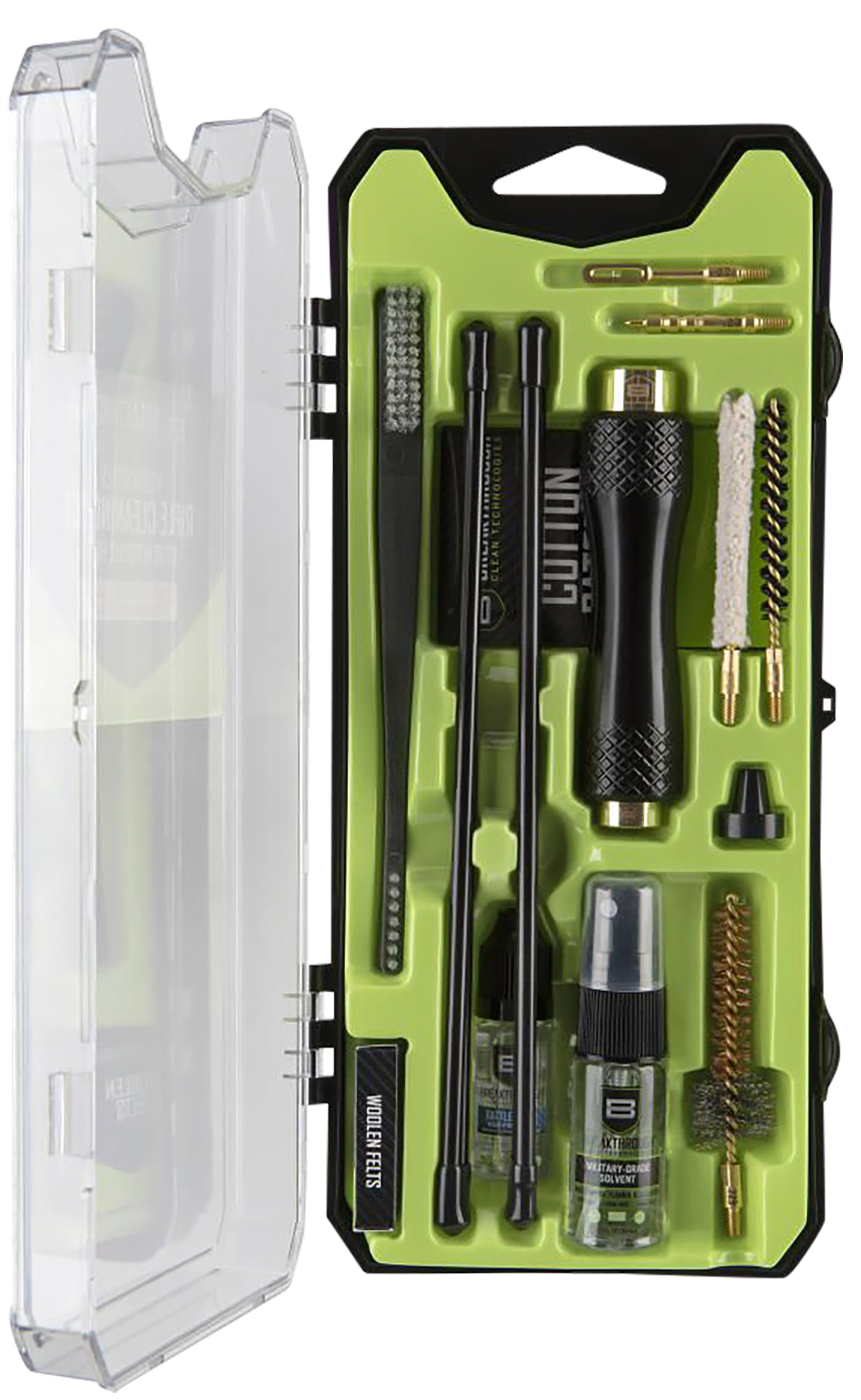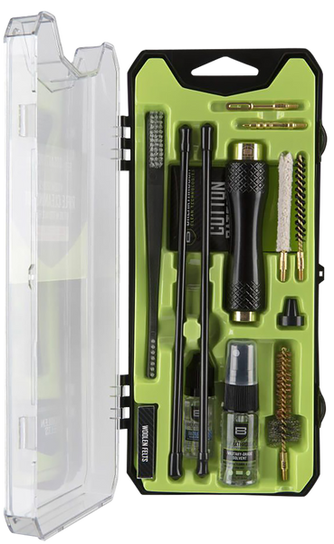 Breakthrough's compact vision series cleaning kit line offers you everything you need to ensure a thorough clean.Its plastic tray keeps all the various pieces of the kit organized neatly inside a durable case that acts like a mini toolbox.This ar-15 cleaning kit come with four (4) stainless steel rods, handle, 3 brushes (bore brush, chamber brush, double end brush), cotton mop, muzzle guard, brass patch...View more