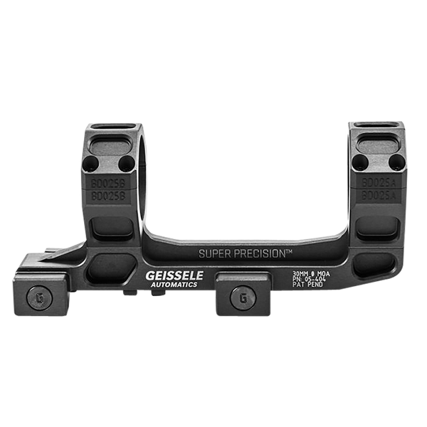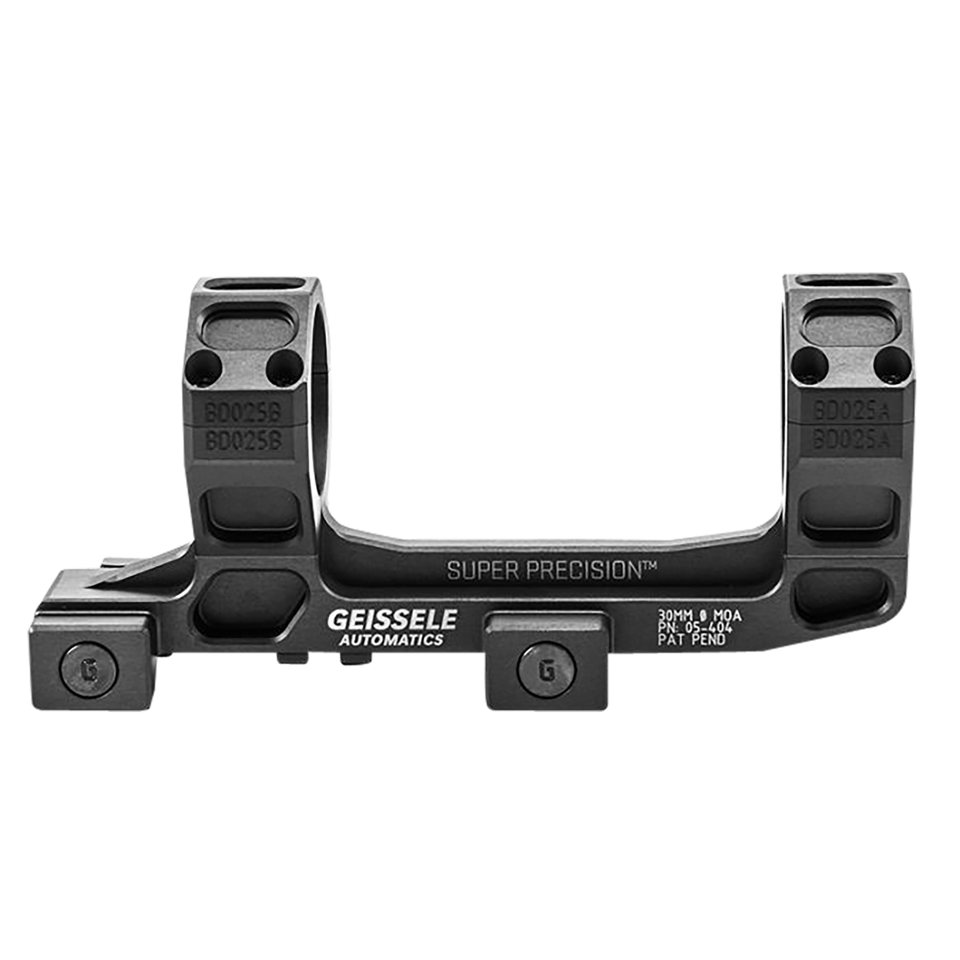 The ar-15/m4 super precision series of scope mounts are optimized for use with an ar-15/m4 upper.The mounting surface spans 7 picatinny sections and utilizes 4 shear lugs.These mounts use geisseles update of the classic nut and bolt method for clamping the mount to the picatinny rail, which is the most secure method of attaching your scope to your weapon.Each nut and bolt combination provides 1,400 pounds of clamping force, much more than any lever mounting arrangement.The geissele super precision mounts are made from 7075-t6 high strength aluminum.To create a mount with the best possible return to zero we machine the entire mount from a single piece of billet aluminum.This allows us to add pockets and ribs throughout the mount for added strength and rigidity.It allows us to line bore the caps to each another and then serialize the caps to the body.The line bore operation creates the best possible fit to the body of your scope so that you can apply proper torque without fear of crushing or damaging the body of your scope.Another advantage of machining from a single piece of aluminum is that we are able to create a mount with cap locations that will suit a wide variety of scopes.
