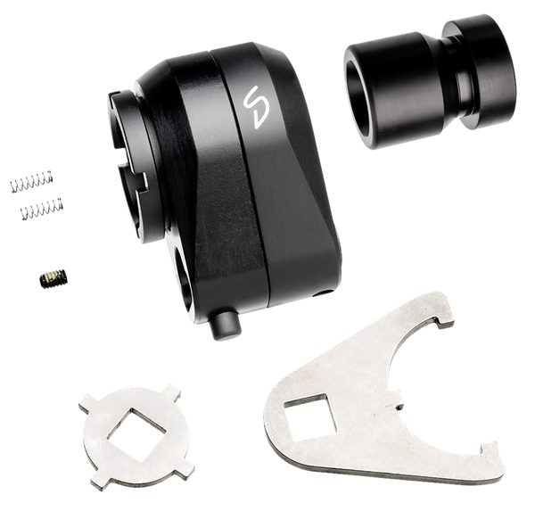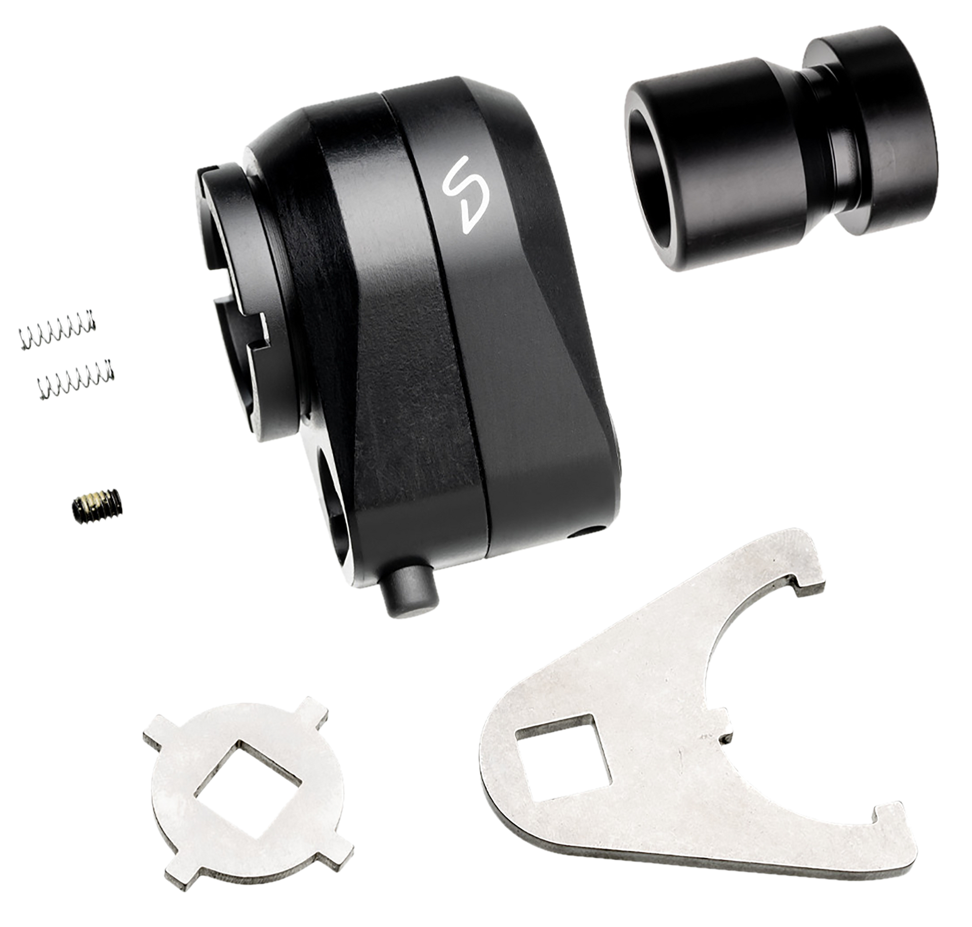 To detach, push the button and twist counter-clockwise 30 degrees.The buttstock will then be separated from the firearm.To re-attach, align the two pieces, push in and turn clockwise 30 degrees.The steel locking mechanism automatically secures the adapter.It's 7075 aluminum construction and steel internals make the rab-ad both robust and lightweight.The rab-ad is designed for gas piston, direct impingement, direct blow back and radial delayed blowback systems in the ar platform.