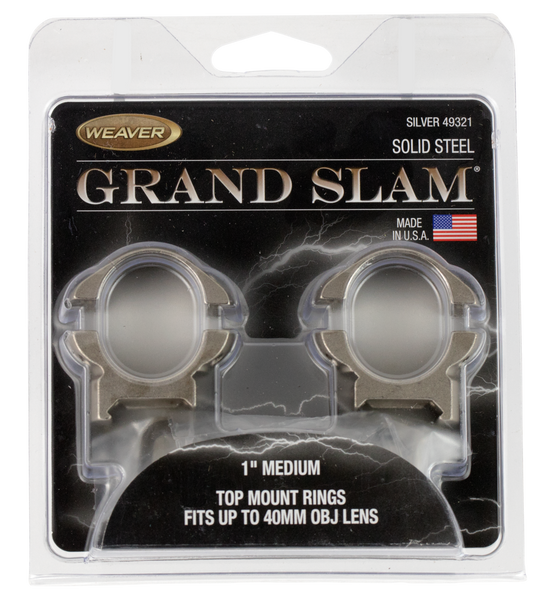 Weaver grand slam rings have been engineered and manufactured to instill confidence, confidence that your ring will not fail when you are making the shot of a lifetime.Each grand slam ring starts as a piece of solid steel bar stock and is slowly and meticulously machined into a finished ring.Each ring features an integrated square recoil lug for superior ring-to-base contact offering maximum recoil resistance for the ultimate hold on your scope.Proudly made in the u.Sa
