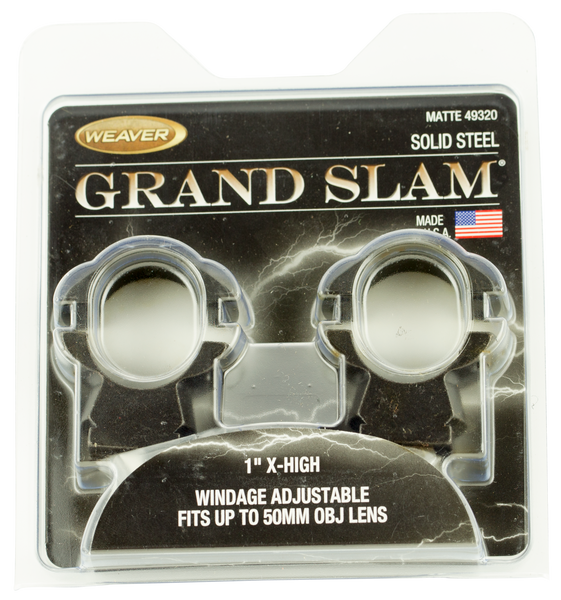 Weaver grand slam rings have been engineered and manufactured to instill confidence, confidence that your ring will not fail when you are making the shot of a lifetime.Each grand slam ring starts as a piece of solid steel bar stock and is slowly and meticulously machined into a finished ring.These rings feature the positive dovetail locking system and boast rear mount windage adjustments.They offer maximum strength in steel construction and top-notch recoil resistance for the ultimate hold on your scope.Proudly made in the u.Sa