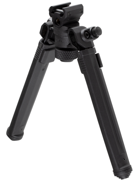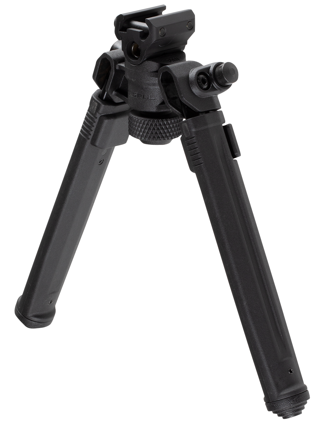 The magpul bipod for 1913 picatinny rail is constructed of mil-spec hard anodized 6061 t-6 aluminum, stainless steel internals and injection-molded reinforced polymer.Deploying and adjusting it is quick and easy.Spring-tensioned legs stow neatly forward and snap down and lock into place with one hand.The legs extend a full four inches, from 6.3" to 10.3".It can tilt up to 50 degrees and pan up to 40 degrees.Additionally, the magpul bipod has the exclusive ability to lock pan at 0 degrees while maintaining full tilt functionality.A soft rubber bipod locking knob cap is attached to the locking knob gives users a steady, non-marring forward rest while the bipod is folded.Should users choose to change feet, the magpul bipods legs accept most atlas pattern bipod replaceable feet, except for the atlas 5-h style.