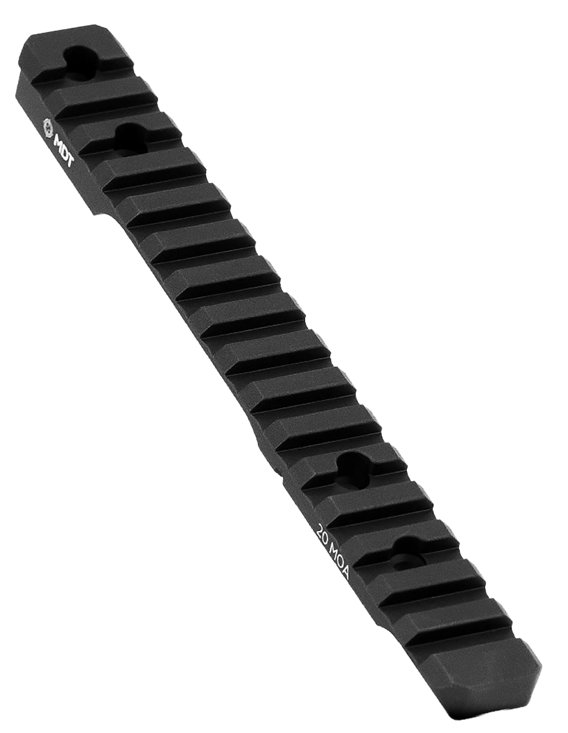 Mdt picatinny scope rails are machined from aluminum stock to be precise, durable.The 20moa rail is the industry standard for hunting rifles, prs rifles or generally long-range shooting.They are machined from 6061-t6 aluminum, then hard-anodized black for a durable finish.The underside of the rails are profiled to allow the rail to be mounted flush on the receiver and to match the geometry of the ejection port.These rails are designed with a 20 moa incline providing additional elevation adjustment from your scope.*a recoil lug has been integrated in the underside rail profile on models where the actions design allows for this feature.