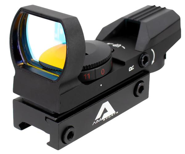 The reflex sight classic edition is a lightweight, compact reflex sight with a wide field of view.Features four reticle patterns: dot/cross/starburst/bullseye with red illumination, ultra-fast target acquisition and unlimited eye relief.Made of aircraft grade aluminum body and is fog proof and shock-resistant.The coated lens provides superior light transmission, resolution and scratch resistance.It has an integrated picatinny/weaver mount and includes a protective lens cover.
