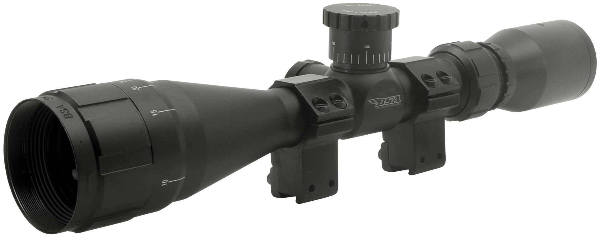 The bsa sweet.22 ao compact provides all the features of standard sweet ao scopes in a package designed specifically for the ruger 10/22 and other small frame.22 rifles.Complete with 3 ballistically calibrated turrets for 36gr, 38gr and 40 gr cartridges.The sweet 22 ao compact also features an adjustable objective, fully coated lenses, 30/30 reticle and all aluminum construction.Includes dovetail rings.Adj Size: .25 MOAMagnification: 4-12xObjective: 40mm...View more