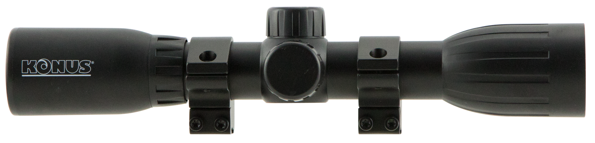 The konusfire riflescopes are designed as a great choice for first time shooters.The scope is an excellent choice for rimfire competitions and hunting deer and white tails.It offers enough maximum magnification to hit prairie dogs at a quarter mile and enough field of view on low power for fast moving rodents up close.Features 1/4 moa adjustable turrets, fog proof, waterproof and shock resistant, 30/30 reticle, second focal plane, 1" tube and coated optics.Includes.22 dovetail mounting rings.