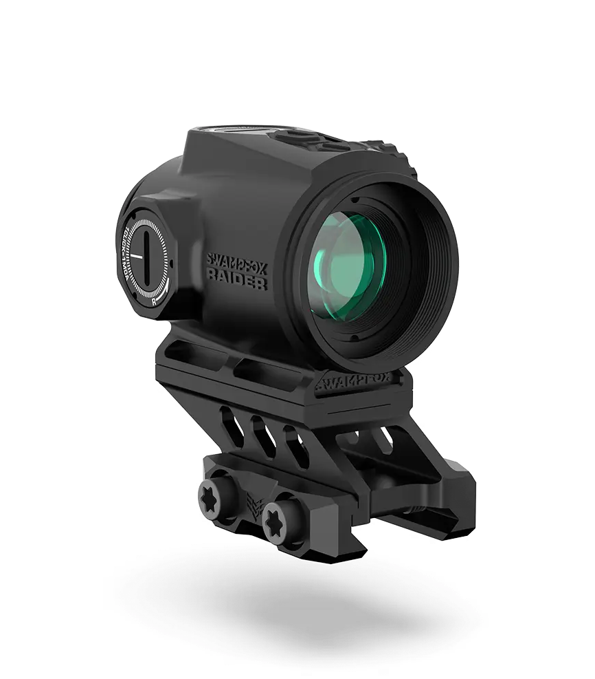 Introducing the raider, a versatile 1x20 micro prism with expansive eye relief for fast and clear sight acquisition.Utilizing etched reticle technology, choose between either the bullet rise compensation (brc) or a single 6 moa dot.It features a t-2 footprint for exceptional versatility between mounting platforms.This micro prism distinguishes itself with a die-cast zinc alloy body, providing a robust housing capable of withstanding impacts without loss of function.Available in red or green illumination, the raider's etched reticle appears black when the illumination is off.Its shake n' wake auto on/off feature conserves battery life and is perfect for home defense.