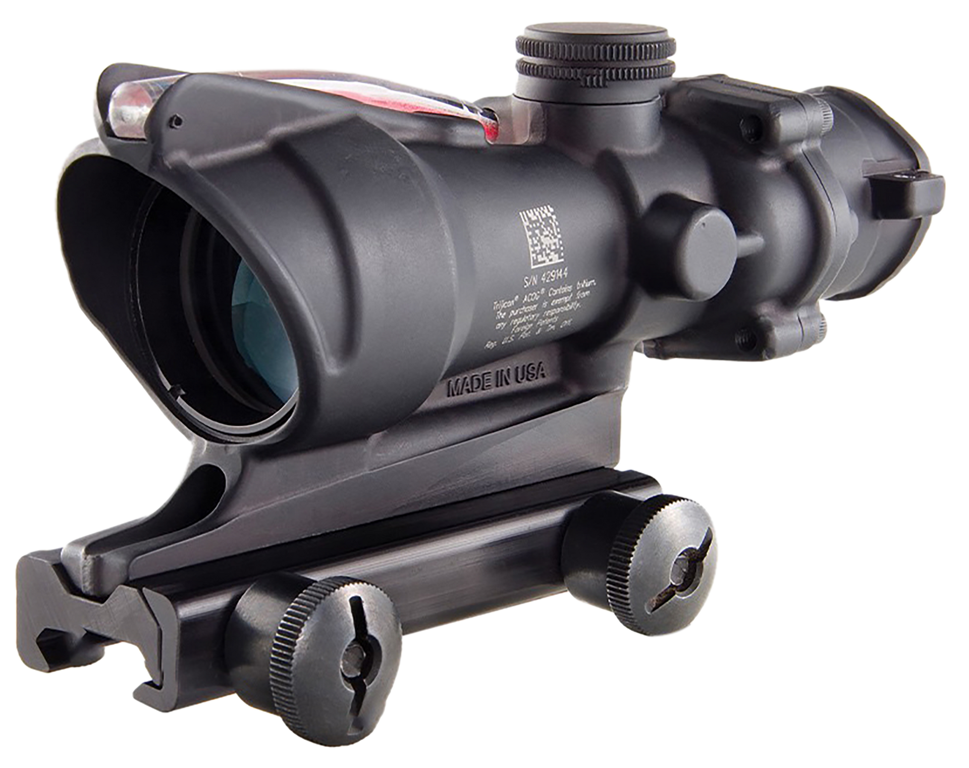 This 4x32 bac acog scope provides a dual-illuminated reticle using fiber optics and tritium for a bright aiming point in any light condition.The ranging reticle is calibrated for m193 ammunition (5.56, 55gr fmj, common military surplus) fired from a 16" barrel.The chevron reticle is designed to be zeroed using the tip at 100 meters and the bdc goes out to 800 meters.The width of the chevron at the base is 5.5 moa which represents 19 at 300 meters.This allows range estimation for silhouette targets.