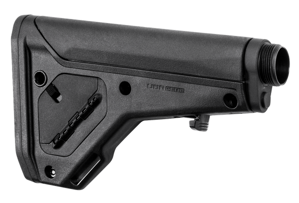 The ubr gen2 is an adjustable stock for ar15/m4 and ar10/sr25 platforms, designed to offer similar strength and stability as a fixed stock with a consistent and comfortable cheek weld in any position.An update of the revolutionary utility/battle rifle (ubr) stock, the ubr gen2 features a fixed cheek piece to provide a consistent cheek weld in any of its eight positions and is compatible with carbine as well as a5 and sr-25 length buffer systems.Designed to accommodate large bore ar calibers and withstand severe impacts, the ubr gen2 is nearly five ounces lighter while retaining all the durability its predecessor was legendary for.Comes standard with front and rear qd sling attachment points, two footman's loops, the ergonomic moe sl angled-toe rubber butt-pad, and customizable storage compartment.