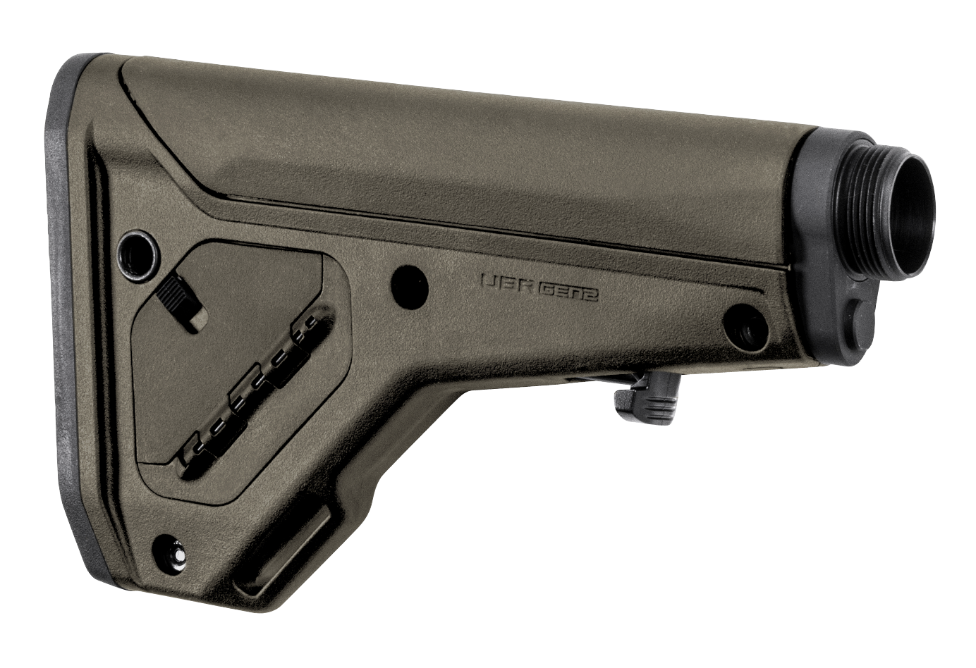 The ubr gen2 is an adjustable stock for ar15/m4 and ar10/sr25 platforms, designed to offer similar strength and stability as a fixed stock with a consistent and comfortable cheek weld in any position.An update of the revolutionary utility/battle rifle (ubr) stock, the ubr gen2 features a fixed cheek piece to provide a consistent cheek weld in any of its eight positions and is compatible with carbine as well as a5 and sr-25 length buffer systems.Comes standard with front and rear qd sling attachment points, two footman's loops, the ergonomic moe sl angled-toe rubber butt-pad and customizable storage compartment.