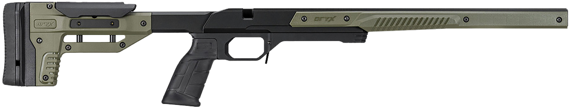 The metal chassis was engineered to improve accuracy and ergonomics through adjustability.The action is bedded on an aluminum block, and the barrel is free floated.The adjustable buttstock allows tailoring a much better fit for accuracy and speed when getting behind the scope.It takes ar15 grips, arca rails, m-lok accessories and has customizable colors.