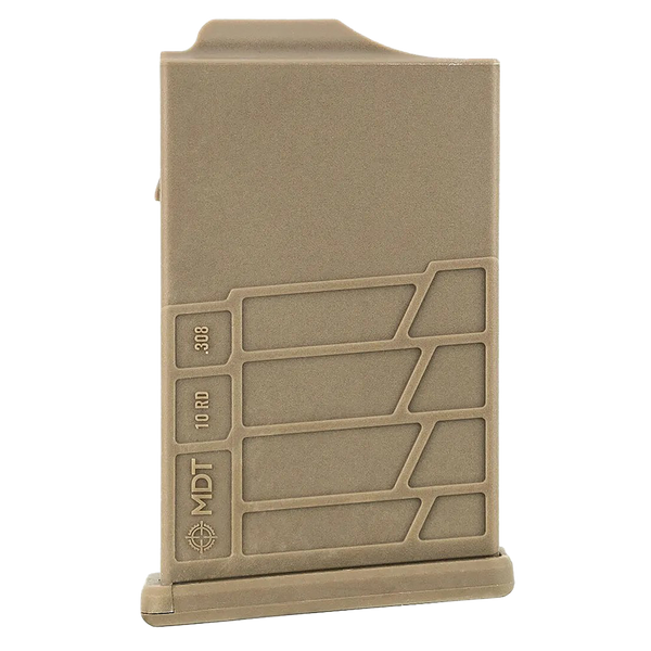 Compatible calibers:.308win, 6.5 creedmoor, 6mm creedmoor, 22 - 250 rem (will work at a reduced capacity), 243 win, 6mm xc, 260 rem, 7mm-08 win, 308/7.62x51 nato, not recommended for.300 wsm.Use a metal magazine for this caliber as the feed lips need adjustment.Mdt detachable aics box magazines are designed to fit the mdt tac21, acc, ess, lss-xl, xrs and lss chassis systems, as well as many other m24 type chassis and bottom metals.Manufactured from high quality polymer and uses a tempered steel spring.Mdt aics magazines are guaranteed to work in mdt xrs, tac21, lss, lss-xl, hs3, ess and acc chassis systems.They do not work with the following inlets; winchester xpc and may require fitting in winchester model 70.Based on customer feedback, the following systems work well with our magazines, but fitting may be required in some cases; xlr chassis, grs riflestocks- (configured for aics magazines), cdi precision bottom metals- (configured for aics magazines), pacific tool and gauge bottom metals- (configured for aics magazines).Mdt put their magazines through vigorous testing.They have used high quality strength polymer with a high glass content to ensure durability and strength.Although not unbreakable, they have driven over these magazines with cars and trucks which did not break them.