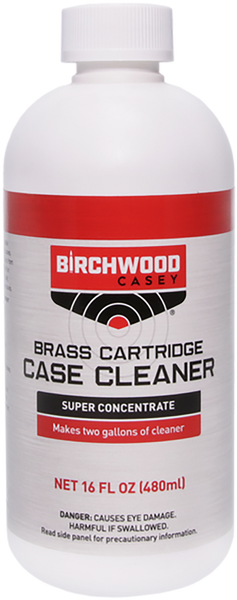 Birchwood's brass cartridge case cleaner makes over two gallons of reusable cleaning solution and will clean 8,000 medium sized cases.It easily removes resizing lubricant, oils, grime, stains from brass cartridge cases and restores them to original finish for reliable operation.Safe, non-fuming, non-etching solution that won't weaken cases.