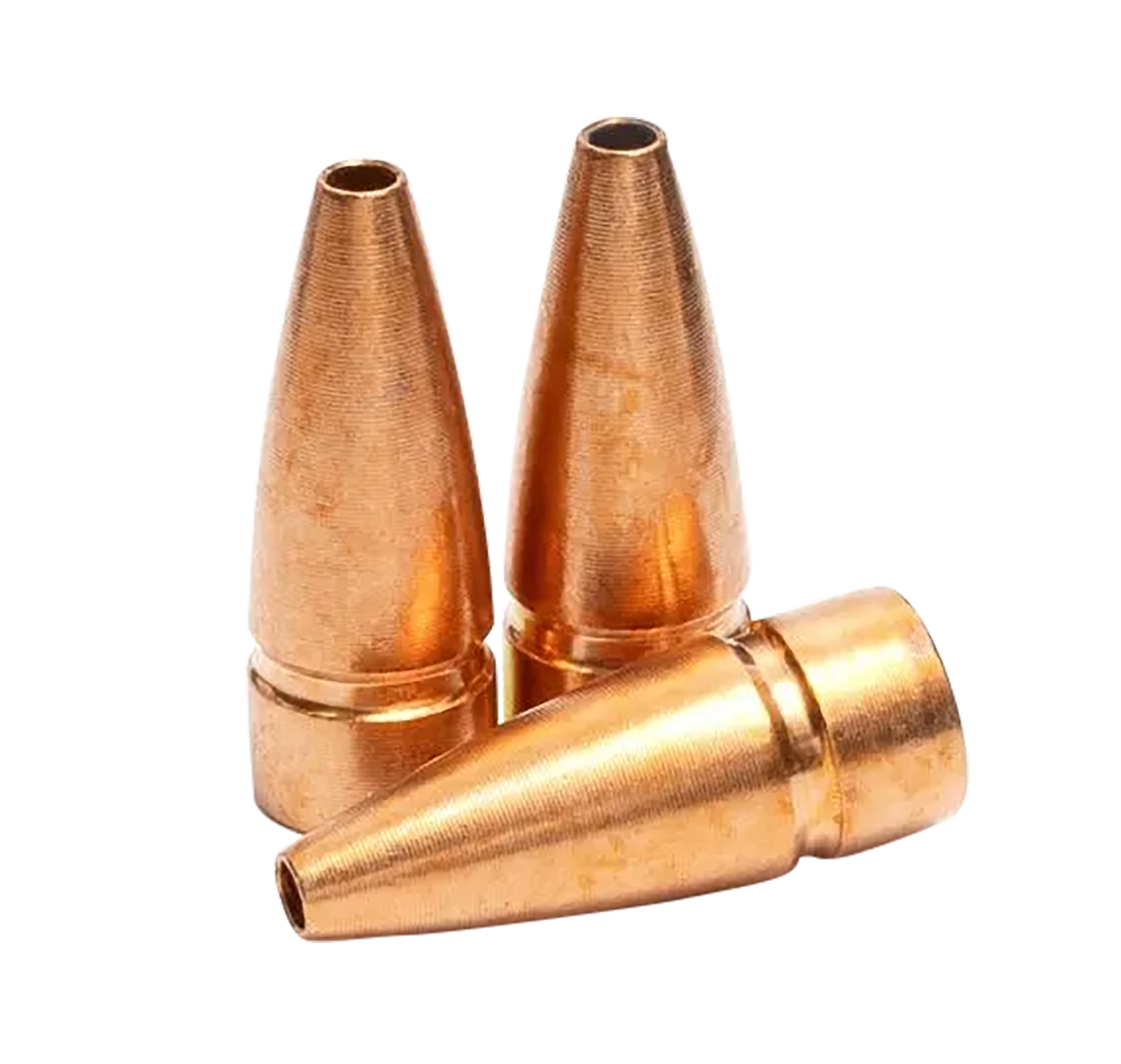 Controlled chaos lead free bullets once fluid is impacted, they shed the front portion of the bullet into multiple petals that radiate outward away from the bullets initial trajectory path resulting in a massive energy spike.The bore diameter base of the bullet continues and penetrates deeply in a straight line.Both the temporary and permanent wound cavity created by this bullet separation is dramatic resulting in quick incapacitation.The solid base creates additional tissue damage and often results in full penetration of the animal.