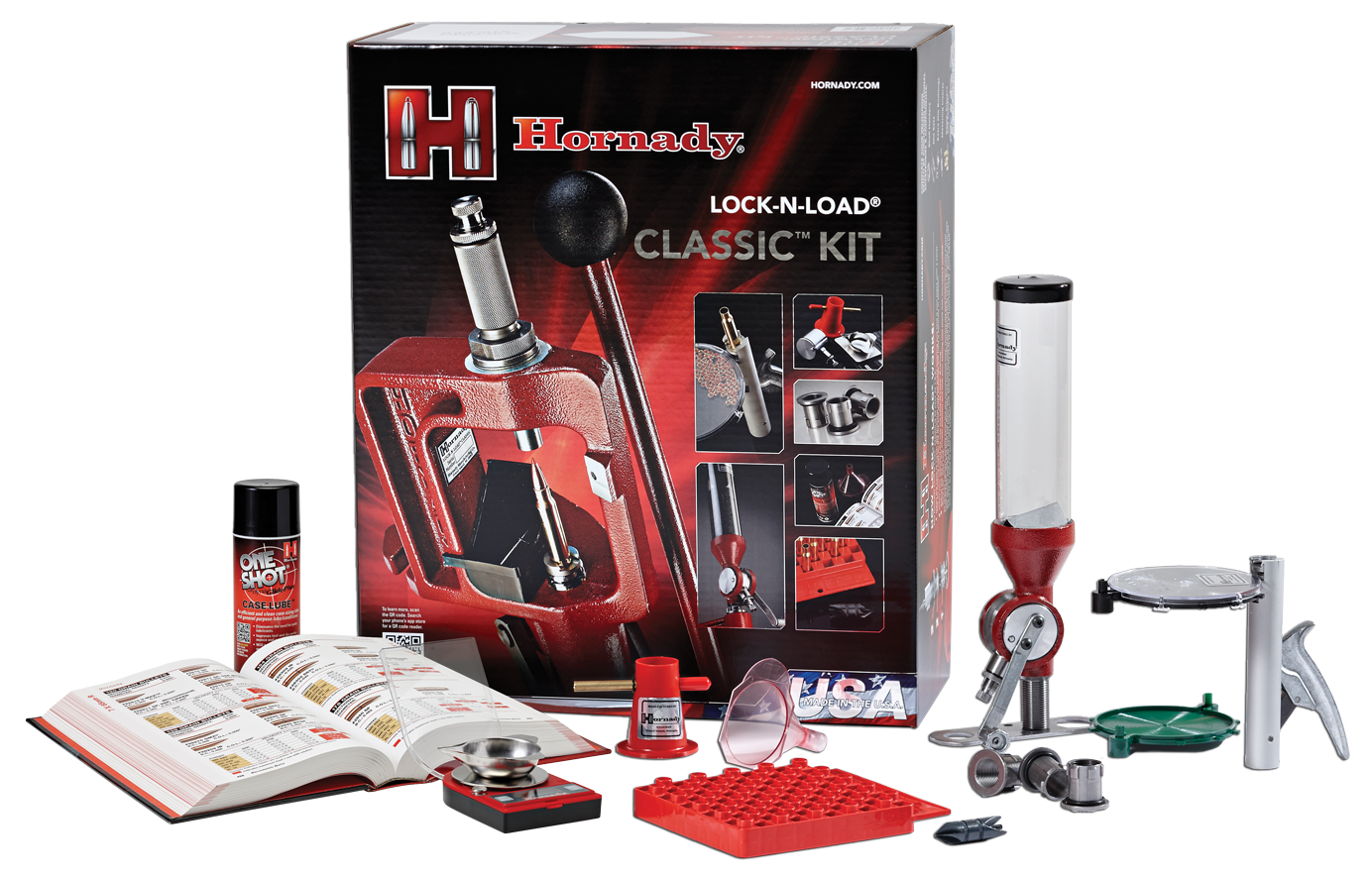 A single stage press is perfect for both beginners and those who want complete control over the entire process.The lock-n-load classic delivers both dependability and precision with its uniquely angled, solid cast frame that offers greater visibility and easier access to the cartridge.Designed to assure perfect die and shell holder alignment, its lock-n-load quick change bushing system also makes the process quick and easy.The lock-n-load quick change bushing system not only let you switch from one die to another in a matter of seconds, it also offers the quickest and easiest die setup on the market.The power-pac linkage design multiplies the leverage you apply to the handle, making it easier to size cases and reduces user fatigue.Once the spent primer ejects at the top of the stroke, you can add a new primer to the pps and it self-aligns to feed and insert the primer at the bottom of the stroke where leverage is best.Includes both large and small primer tubes.This kit includes: lock-n-load classic; lock-n-load power measure; lock-n-load die busings (3); positive priming system; universal reloading block; powder trickler; one shot case lube; reloading handbook; digital scale; primer catcher; handheld priming tool; chamfer & deburr tool; powder funnel.