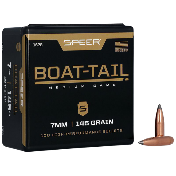 Extend range on medium game with speer boat-tail bullets.Designed for the long-range shooter, these bullets tapered heel flattens trajectories and decreases wind drift.On impact, they expand rapidly for quick, clean kills.