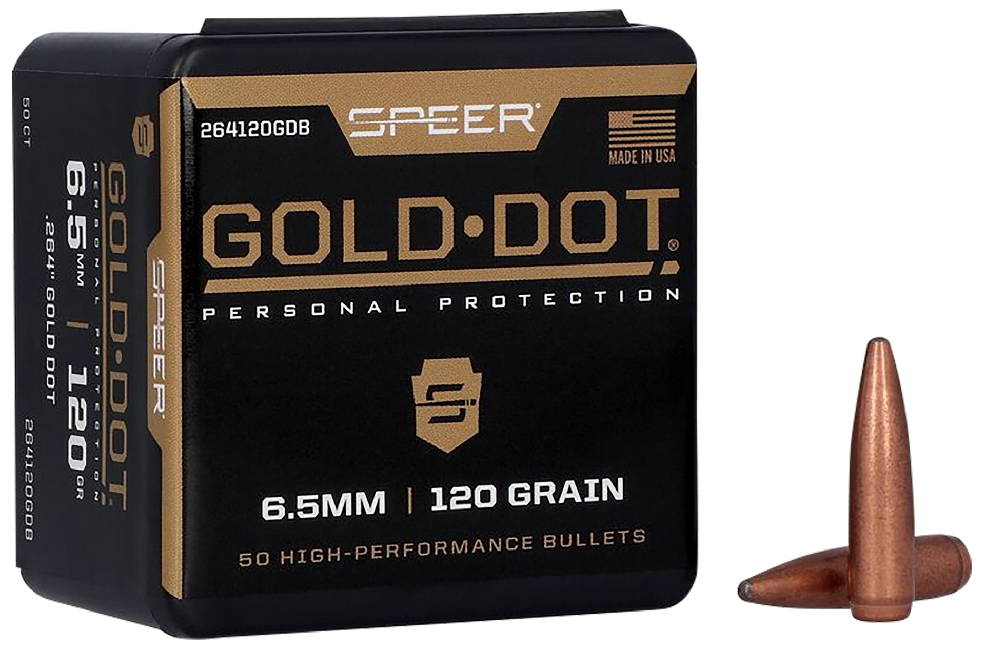 Law enforcement professionals trust the gold dot bullet design with their lives every day.Now speer offers consumers the same performance in a line of personal protection rifle bullets.Their exclusive manufacturing process bonds the uniform jacket to the core one atom at a time, ensuring proper expansion and nearly 100 percent weight retention.The result is superb accuracy and immediate, threat-stopping performance.