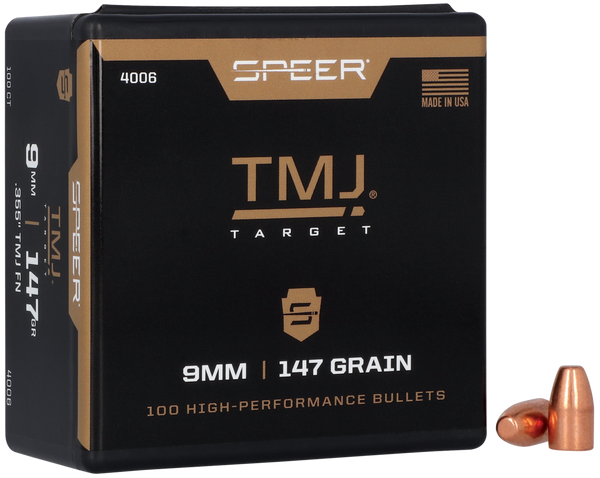 Unlike conventional fmj bullets that leave lead exposed at the base, speer uses uni-cor technology to completely encase the tmj bullets lead core in a seamless jacket.Its cleaner, more accurate and more consistent than any fmj.Coefficient: .208Bullet Type: Total Metal JacketBullet Diameter: .355Weight: 147 grBullet Caliber: 9mmJacket Material: CopperCore Material: LeadCannelure: NoSectional Density: .167Oal: .690"Quantity: 100 Per BoxRecommended Usage: TargetView more