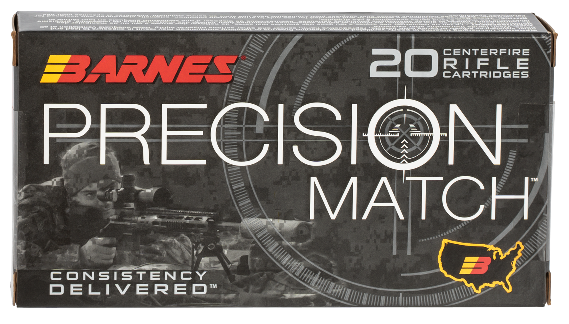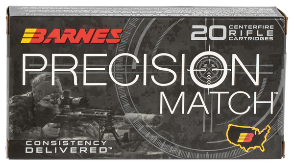 Barnes precision match has exceptional long range accuracy, allowing the shooter to send it with confidence every time.The load utilizes a temperature stable propellant for low extreme spreads and standard deviations, and first quality, premium brass.