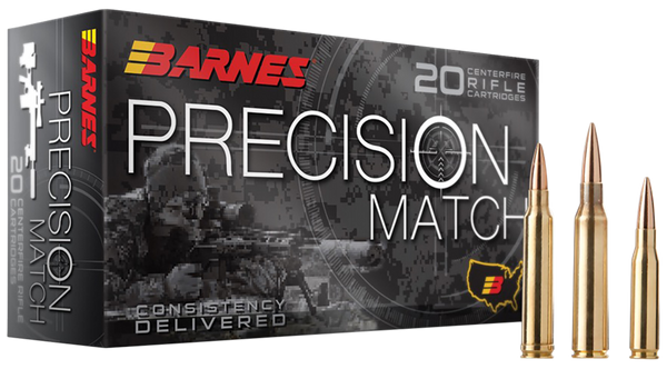 Barnes precision match has exceptional long range accuracy, allowing the shooter to send it with confidence every time.The load utilizes a temperature stable propellant for low extreme spreads and standard deviations, and first quality, premium brass.