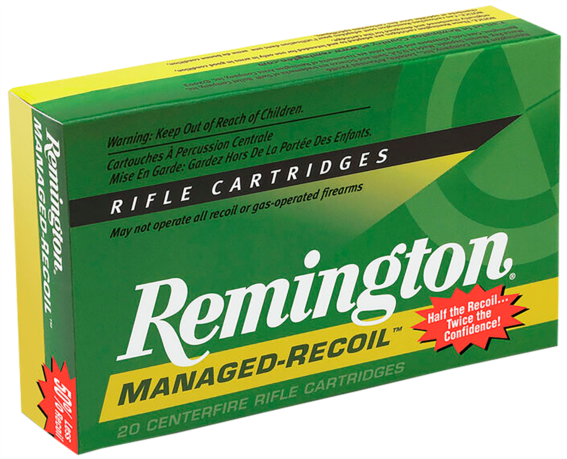 Managed-recoil centerfire ammunition delivers trusted remington field-proven hunting performance out to 200 yards, with half the recoil.This is achieved through a specialized bullet developed specifically to perform at lower velocity levels.Managed-recoil bullets deliver 2x expansion with over 75% weight retention on shots inside of 50 yards.Caliber: 30-30 WinBullet Type: Soft Point Core LoktBullet Weight: 125 grMuzzle Energy: 1313 ft lbsMuzzle Velocity: 2175 fpsRounds Per Box:...View more