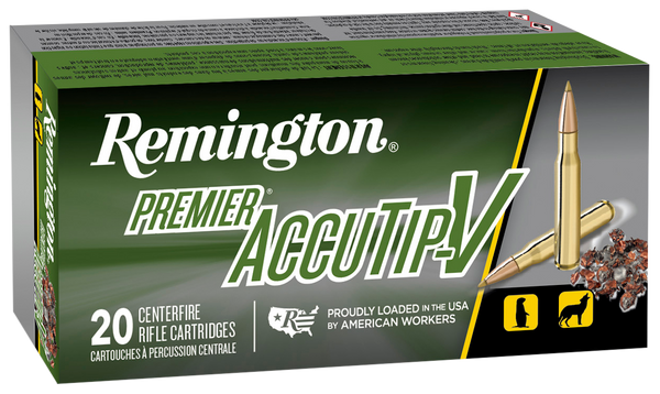 Premier accutip-v is optimized to deliver superior match-grade accuracy and maximum downrange energy whenever, and wherever you need it, every time.At impact, its gold polymer tip is driven rearward causing the thin jacket and soft lead core to fragment violently.First and foremost, though, it gets there precisely shot after shot.