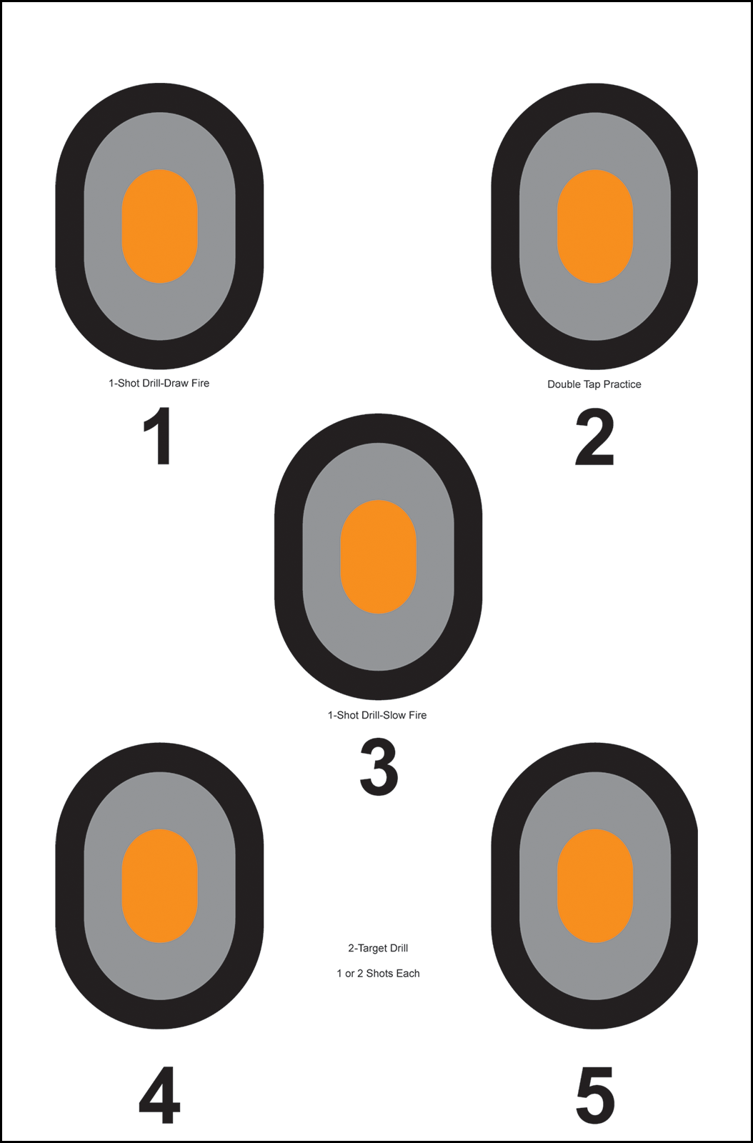 This target features 5 bull's-eye targets.The targets features the colors gray and black with a bright orange center.It has dimensions of 23" x 35".