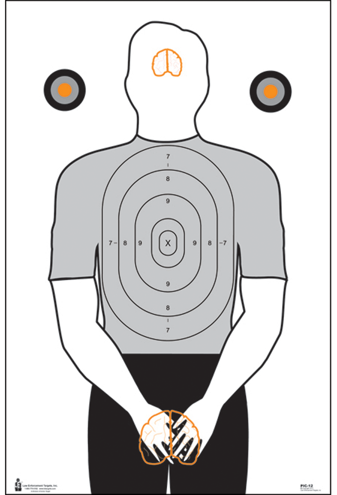 The pic-12 politically incorrect ladies target features a male silhouette with scoring rings and orange florescent "brains".