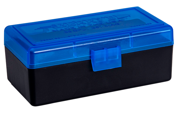 Berry's 403 50 round ammo box is made from high impact polypropylene for increased strength against cracking, chipping, warping, expansion, or contraction.The box is stack able and features a stronger, flip-top design, allowing the securing of ammo storage with easy one-handed operation.