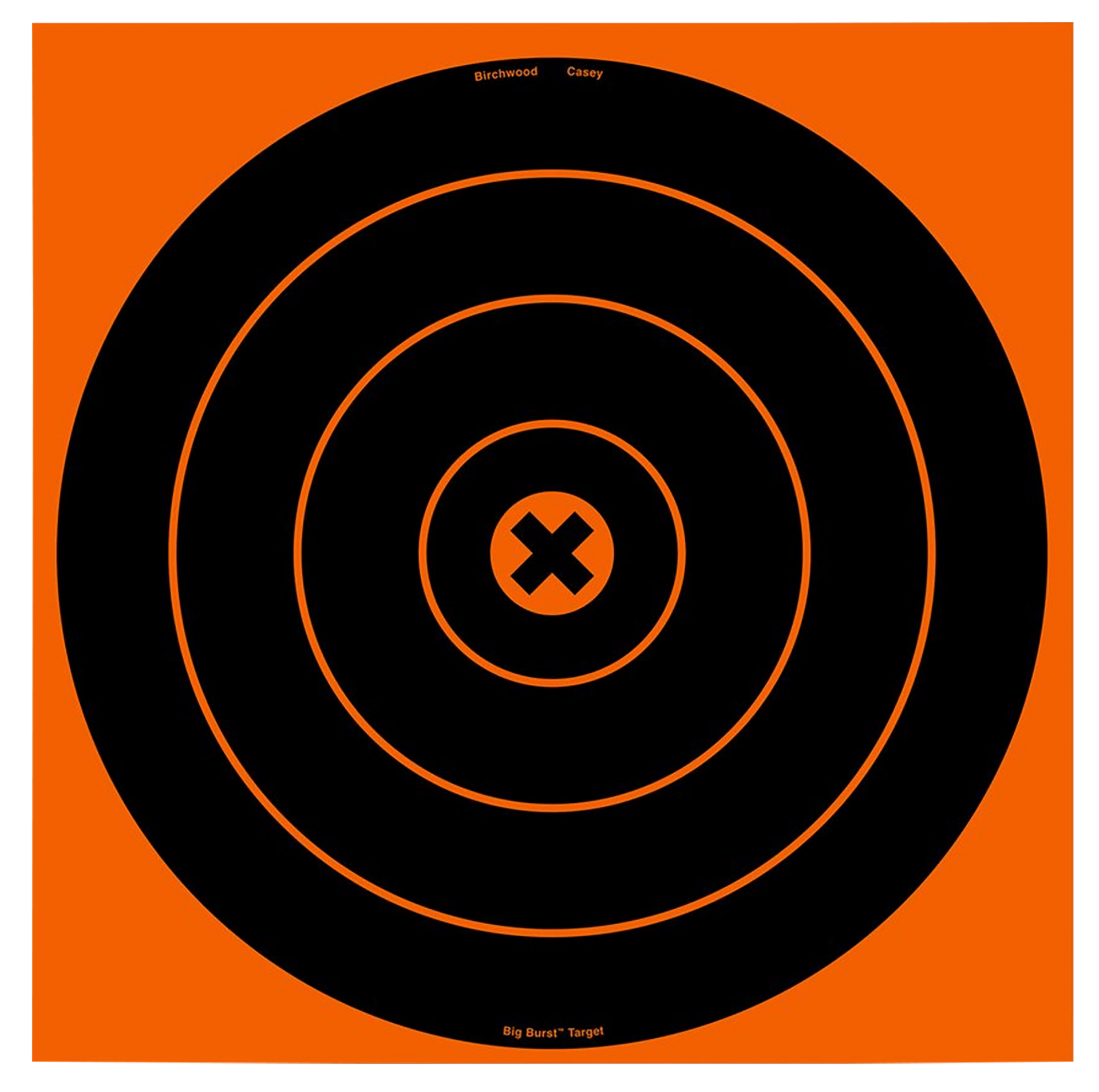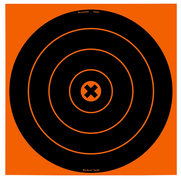 Birchwood big burst 12" sight in targets allows shooters to shoot from any distance and see the shot.The orange and black targets bullet holes burst into high visibility white to give maximum contrast for maximum visibility.These targets are self adhesive for easy set up.