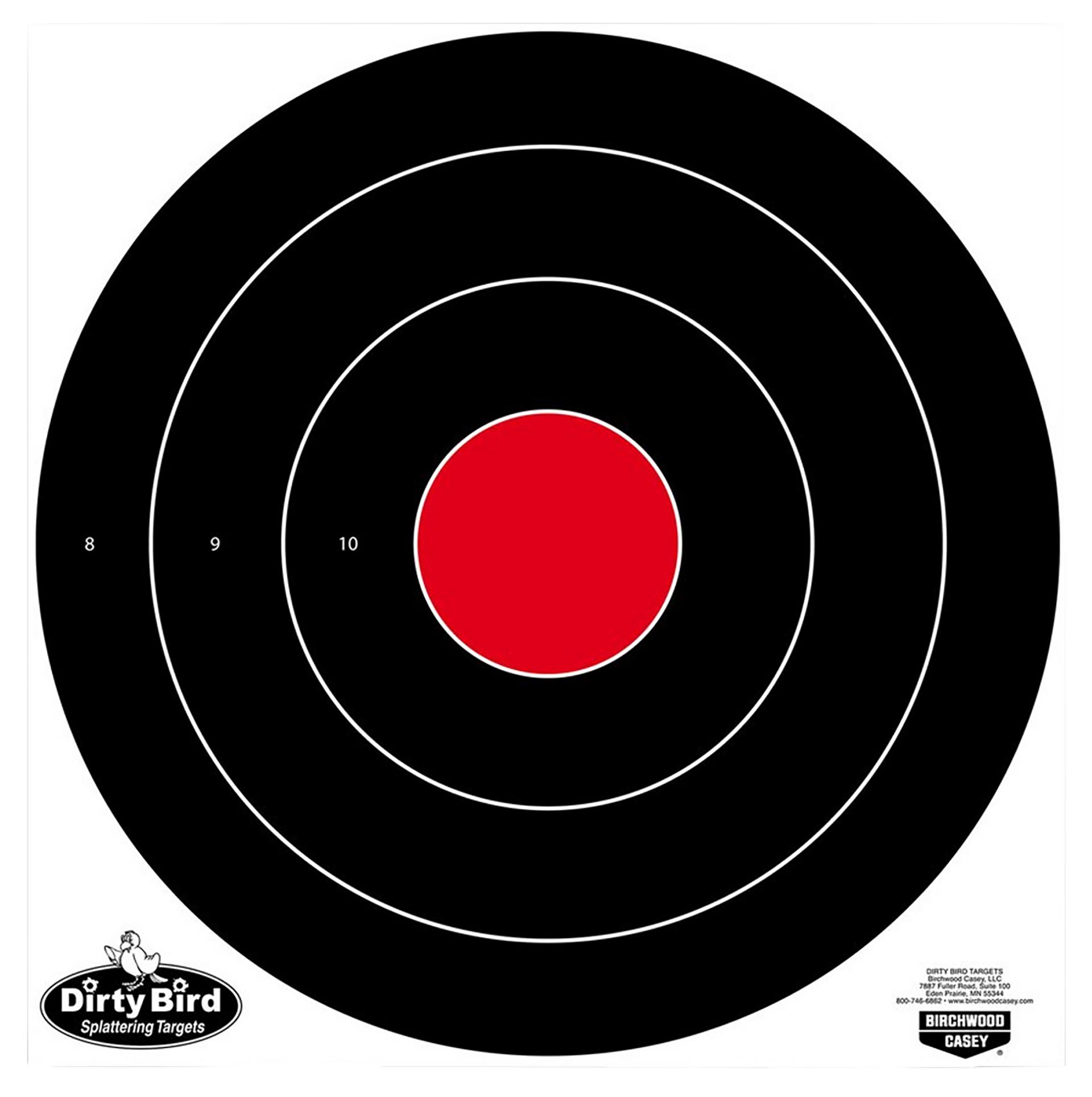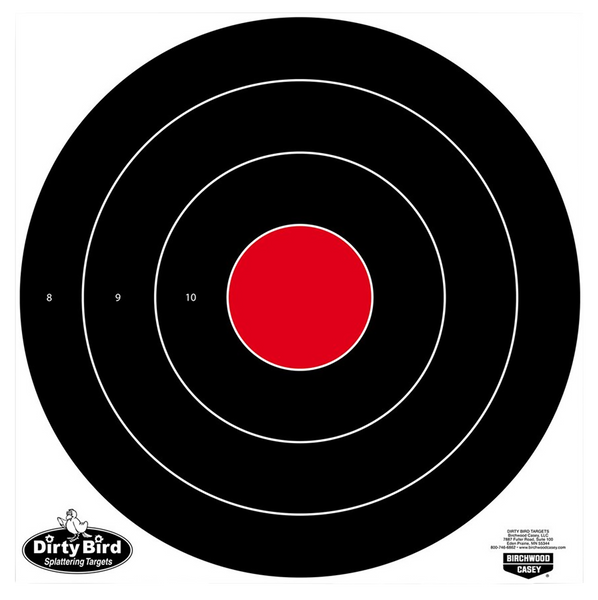 Birchwood casey's dirty bird targets allow you to spot your shots easily with "intense white" splatter for superior downrange contrast.The heavy tagboard construction is great for indoor or outdoor use.The non-adhesive back also allows you to affix to a surface as you wish, add notes, and then easily save the targets for future reference.