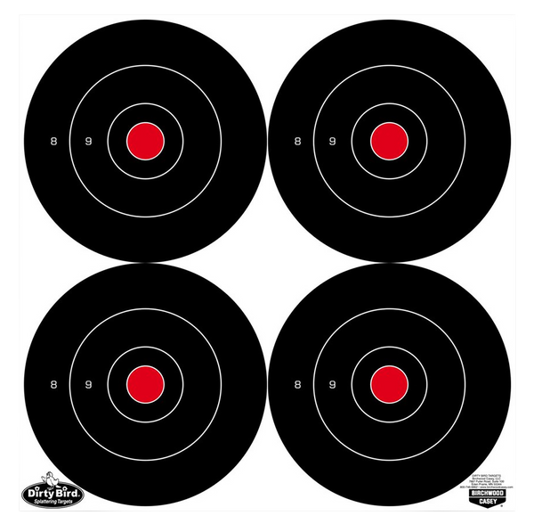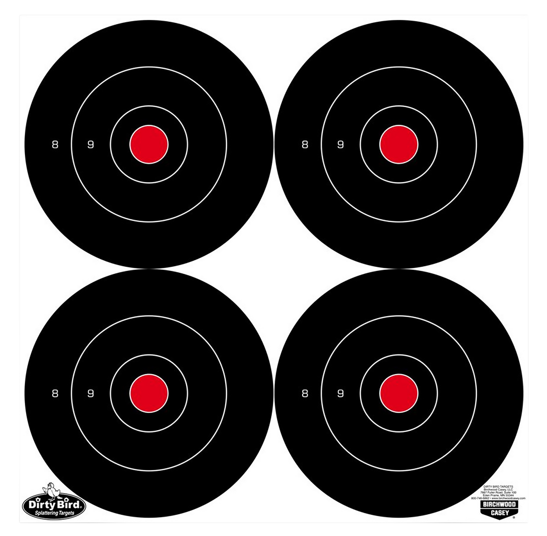 Birchwood's dirty bird bull's-eye targets help spot your shots easily with white splatter contrast.The heavy tagboard targets are great for indoor or outdoor longer range shooting.The target is non-adhesive which allows you to affix to any surface you wish, add notes and easily save the targets for future reference.