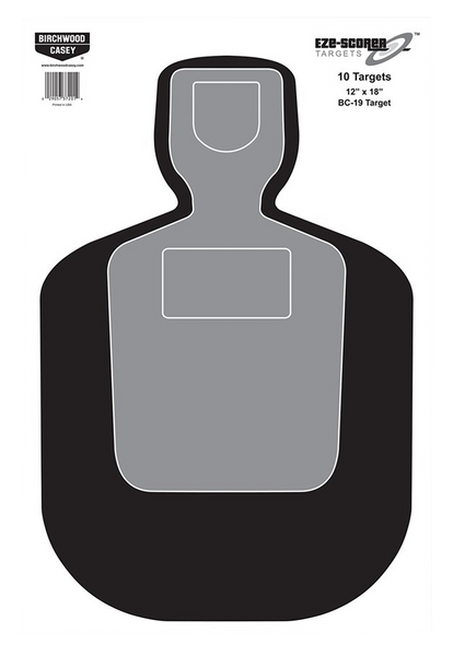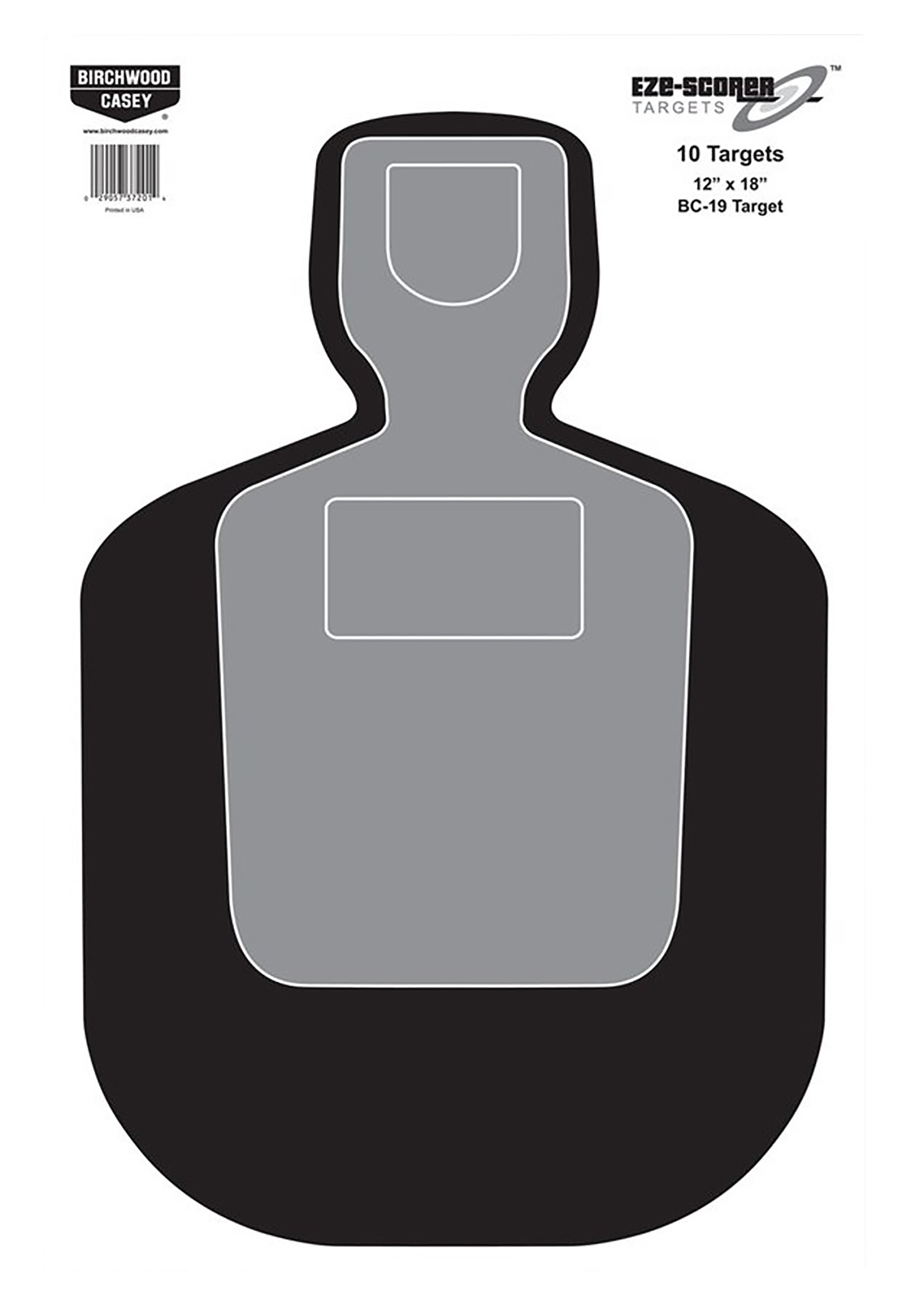 With birchwood's eze-scorer bc-19 target shooting has never been easier.Practice or train on this target which is great at practical training distances at indoor or outdoor ranges.It is printed on brilliant white paper to contrast the black and gray silhouette design.