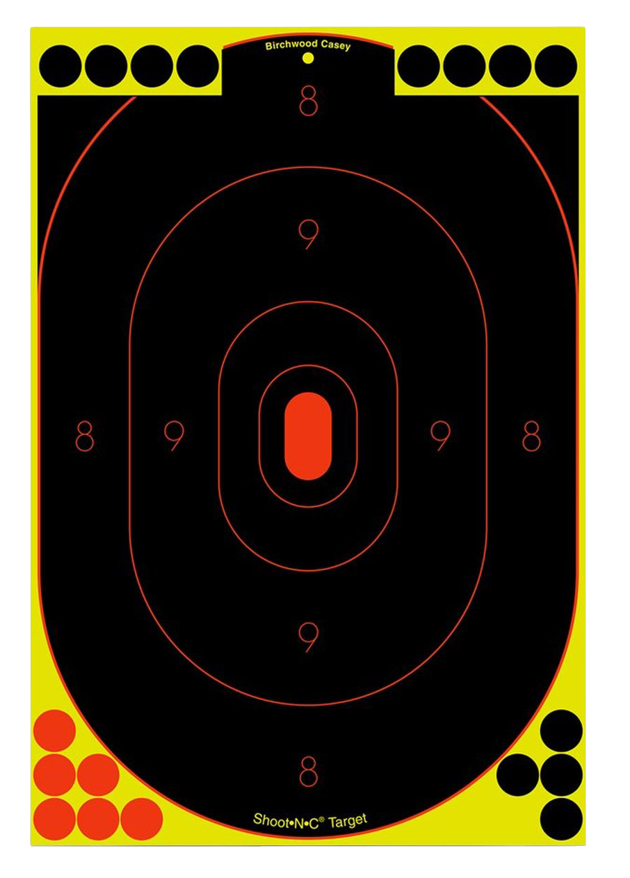 The birchwood shoot-n-c silhouette targets are great for handguns and shooting ranges.Bullet holes are easy to spot with bright chartreuse rings on these self-adhesive targets.Great for indoor or outdoor use and low-light conditions.Includes 1800 repair pasters to lengthen target life.