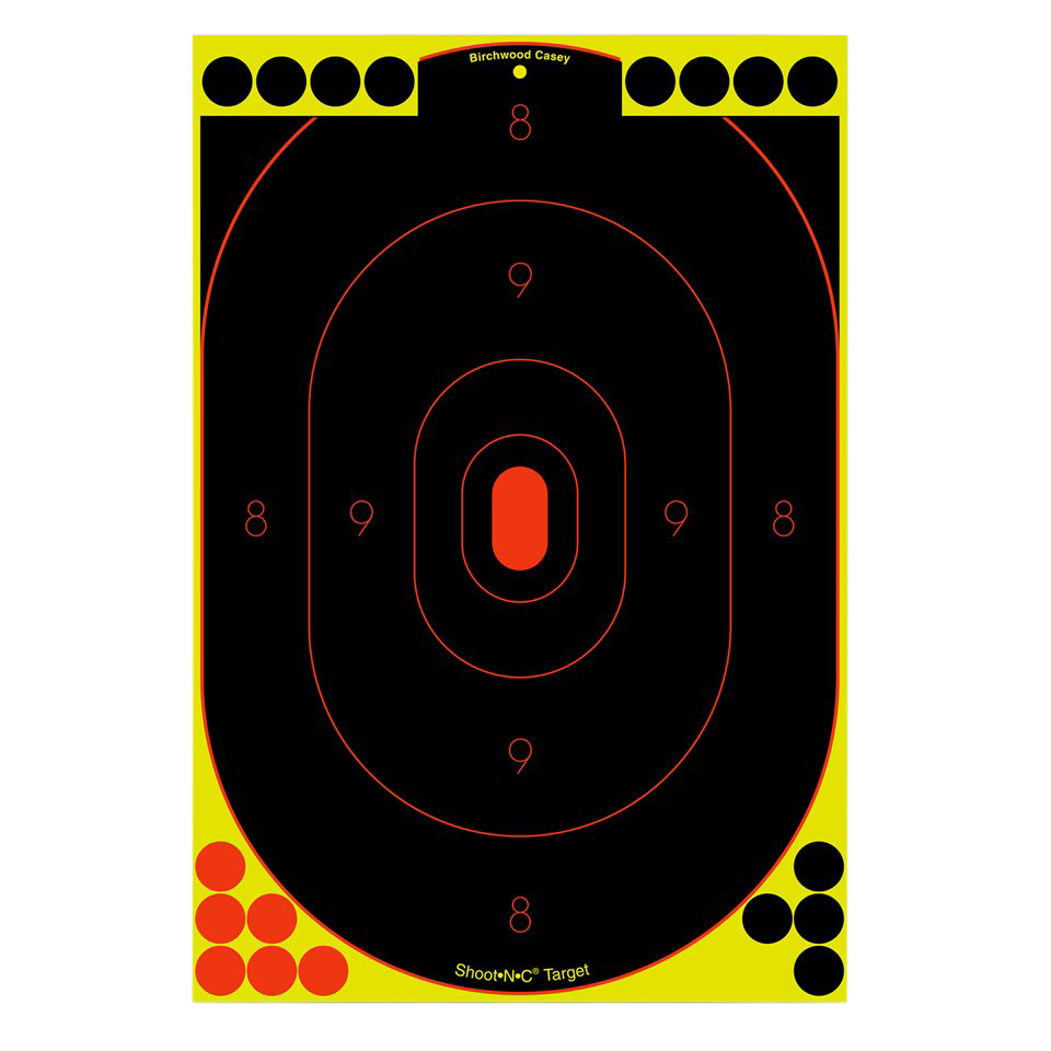 The birchwood shoot-n-c silhouette targets are great for handguns and shooting ranges.Bullet holes are easy to spot with bright chartreuse rings on these self-adhesive targets.Great for indoor or outdoor use and low-light conditions.Includes 216 repair plasters.