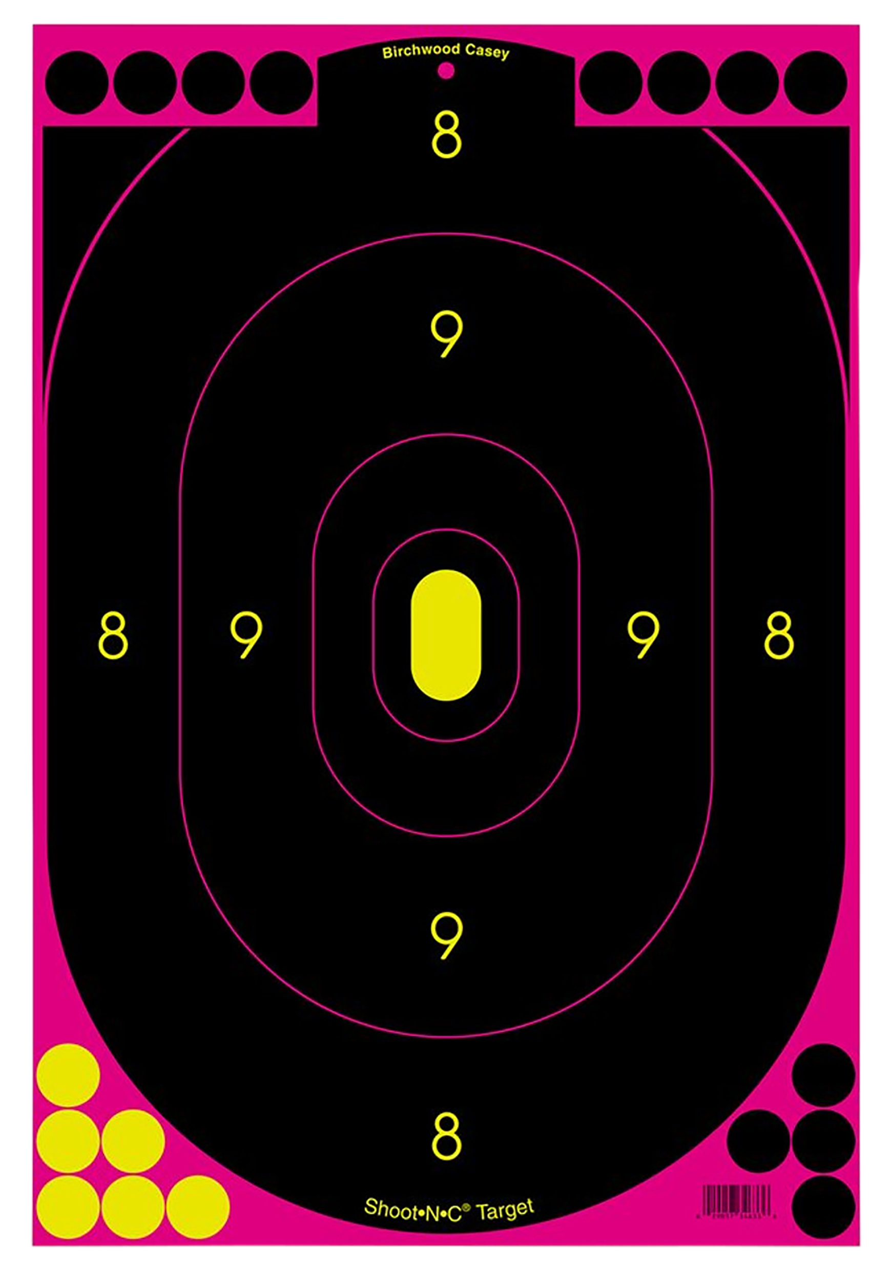 The birchwood shoot-n-c silhouette targets are great for handguns and shooting ranges.Bullet holes are easy to spot with bright chartreuse rings on these self-adhesive targets.Great for indoor or outdoor use and low-light conditions.Includes 1400 pasters