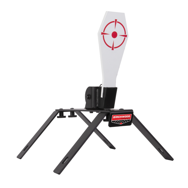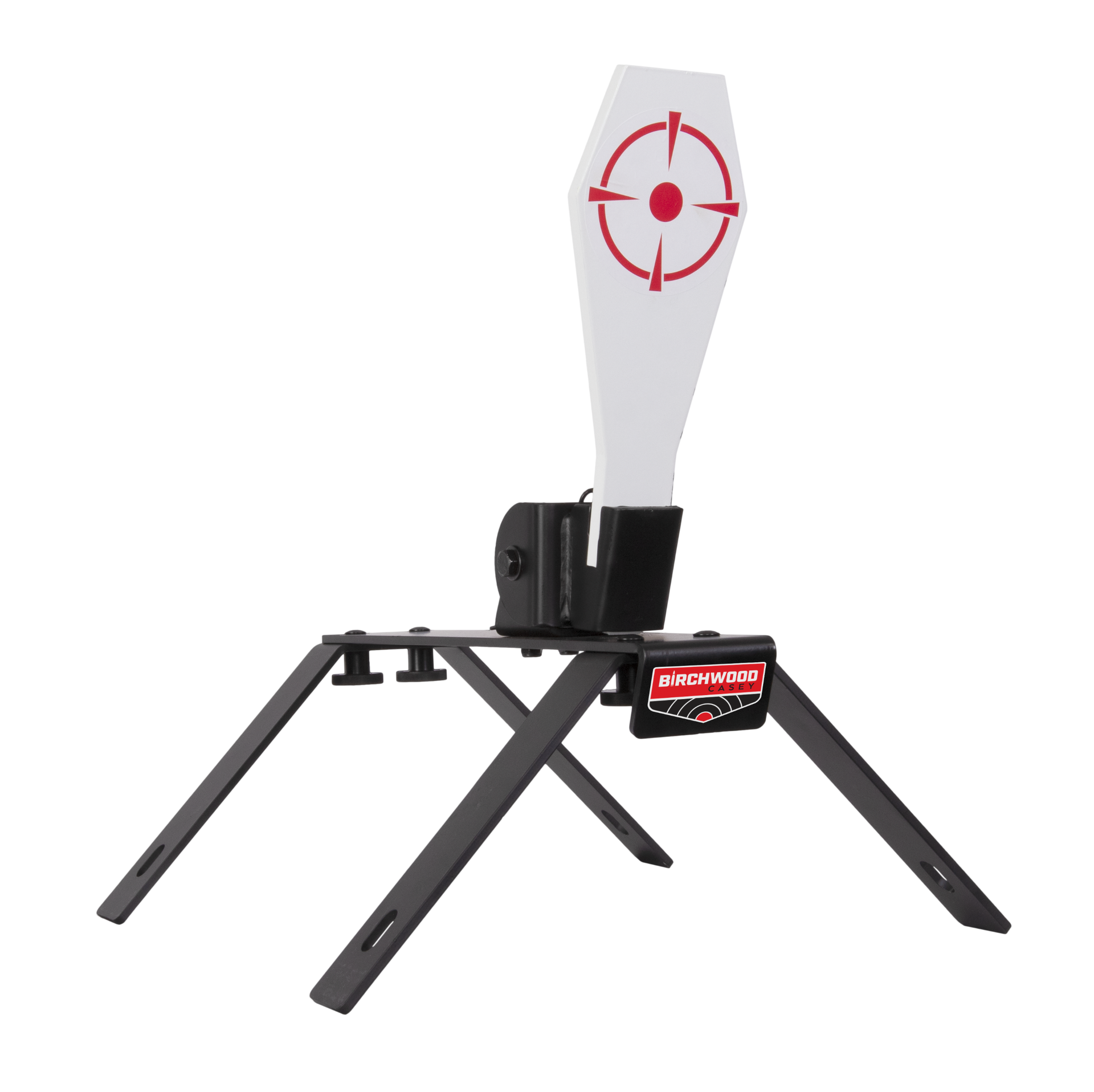 Portable target system with steel construction and 3/8" ar500 steel.Spring reset mechanism provides visible feedback when hit and doesn't require a shooting to stop shooting to reset the target.Includes removeable coffin shaped paddle target and ground stakes.