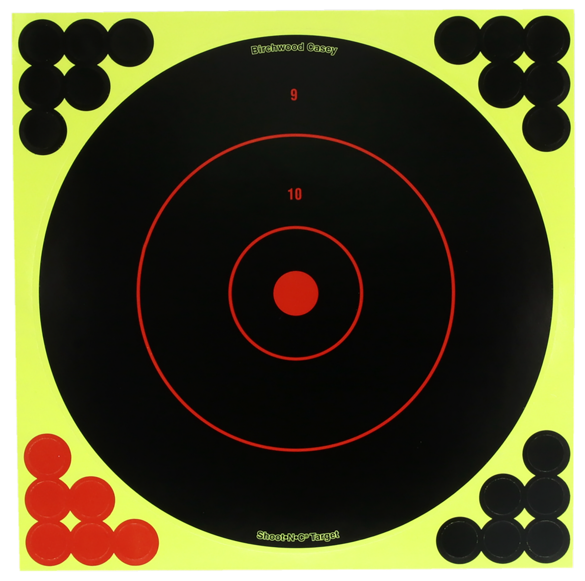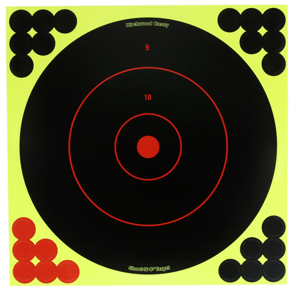 On this 12" target dispenser the perforated center is removed for exposing targets.This dispenser always ensures the targets lay flat.The adhesive backing on the targets allow you to apply anywhere.The package has a perforated hang tag that pops out on the top of the package.