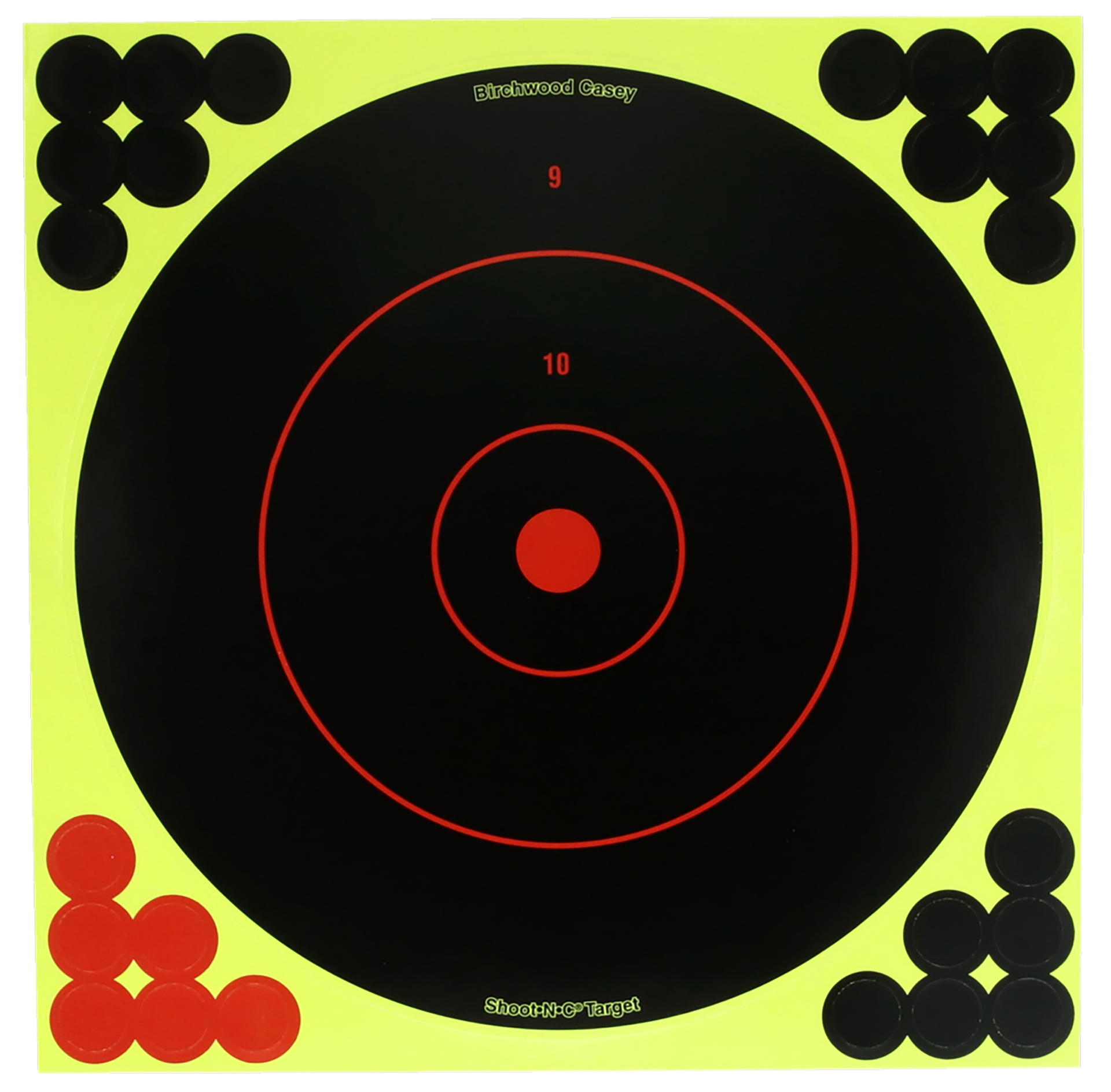 On this 8" target dispenser the perforated center is removed for exposing targets.This dispenser always ensures the targets lay flat.The adhesive backing on the targets allow you to apply anywhere.The package has a perforated hang tag that pops out on the top of the package.