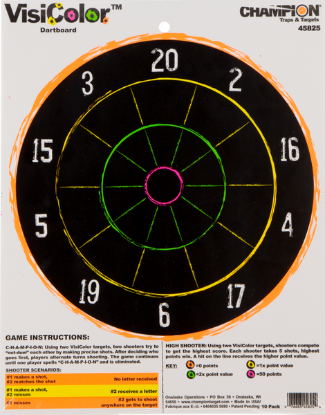Visicolor high-visibility targets offer shooters an interactive, fun way to sight in and practice.They provide multi-colored impact halos for easy identification of specific hit locations.