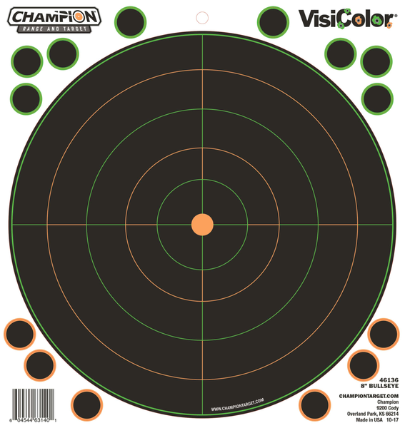 Peel-and-stick champion visicolor adhesive targets create an instant shooting range.Multi-color impact halos help shooters track specific shot placement.This pack comes with a 8" bullseye target per page and pasters.
