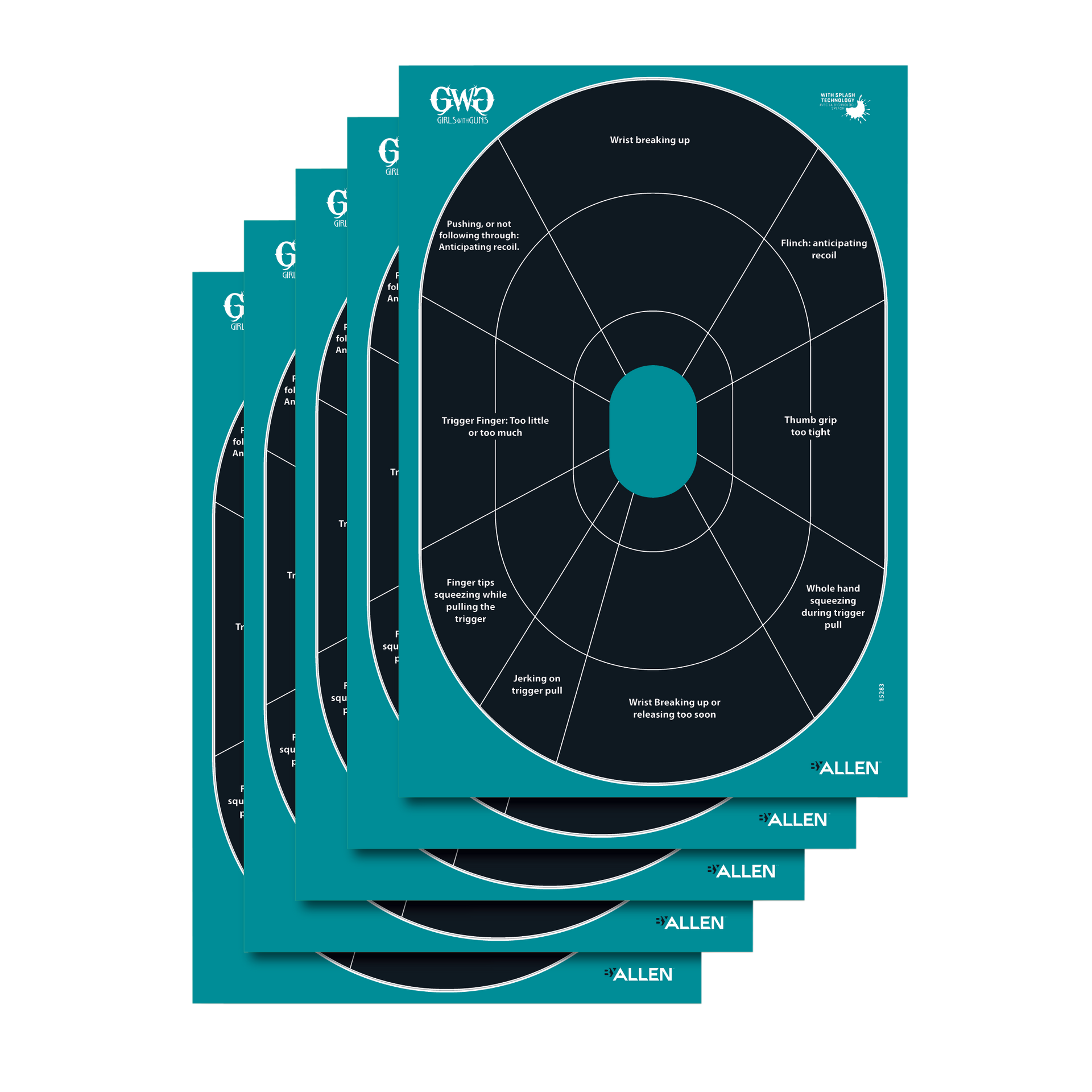 The girls with guns sight-in grid splash adhesive target is designed to make shooting a breeze.Shooting targets feature high contrast colors and bright inks for easier visibility down range, providing tools needed to sharpen skills.Splash technology provides visual impact to help improve accuracy, consistency, and confidence when needed most.
