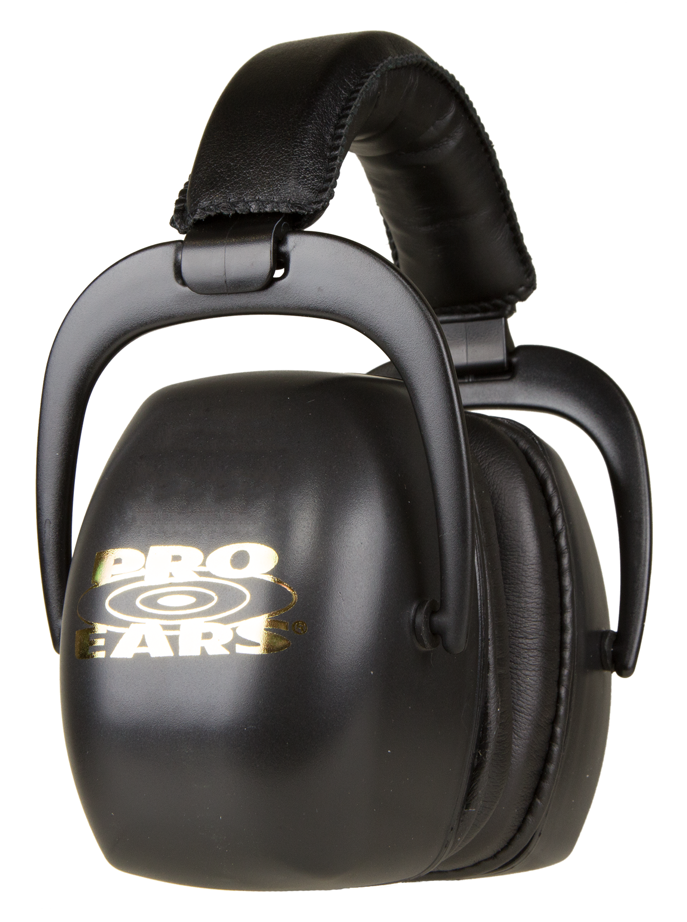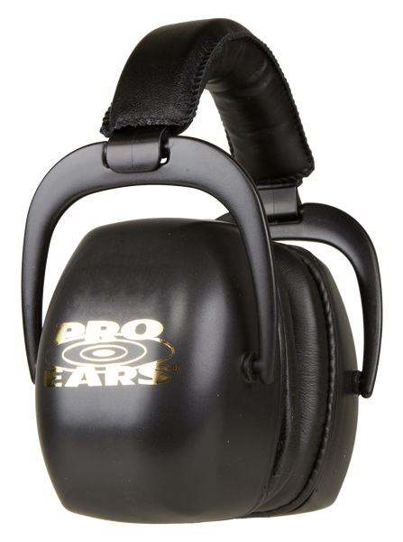 Pro ears ultra-pro are rugged, hight profile cups, adjustable headband, and proform leather ear cushions.These are suitable for a high noise environment like shooting on the rang, in a factory, or in your home workshop.The ultra-pros can be used in conjunction with a hard hat.The included hard hat adapter fits most hard hats pivoting and locking in the up position.The snap in ear cushions make replacement quick and easy.These pro ears weight 12 ounces and have a noise reduction rating (nrr) of 30.