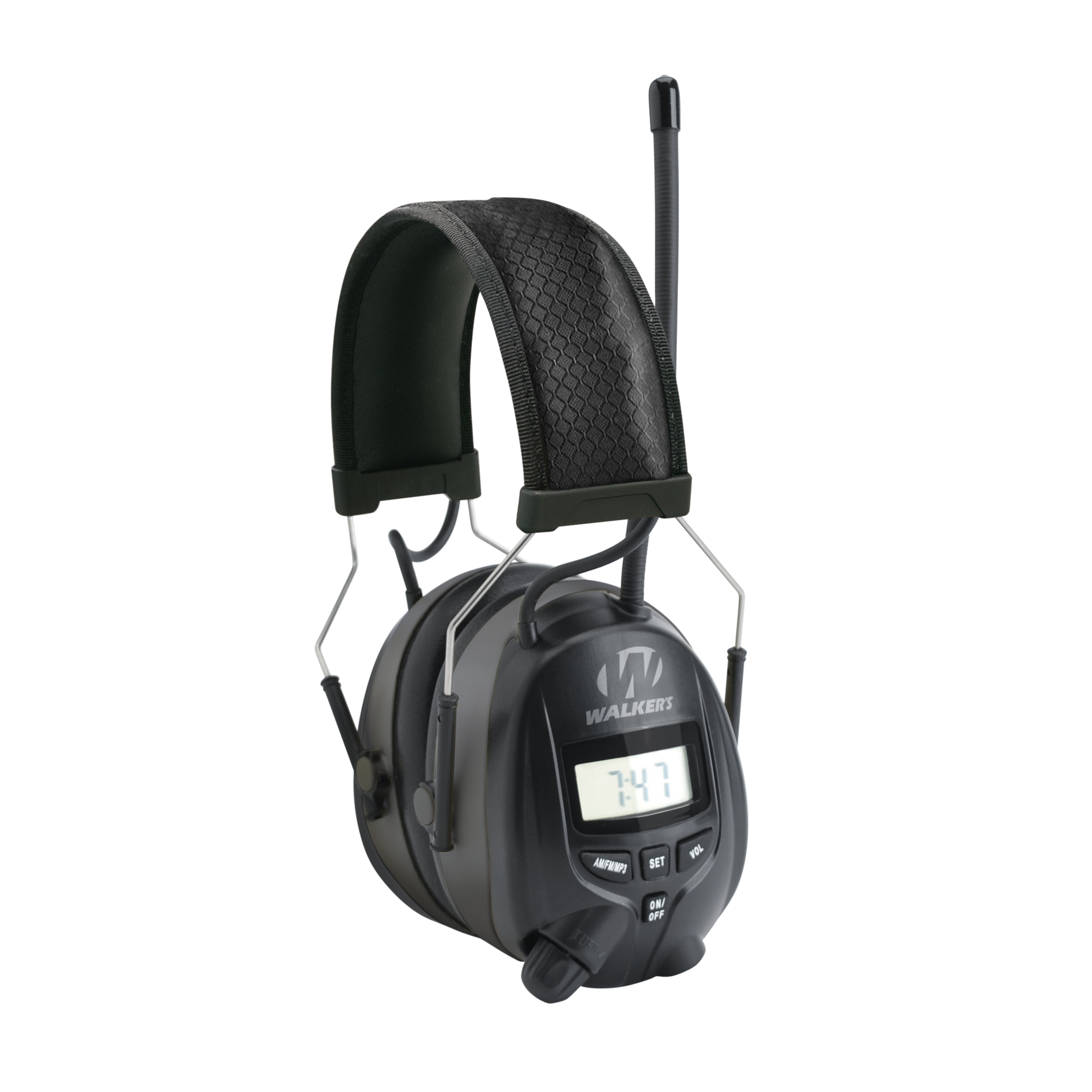 The am/fm digital muff with hearing protection features a built-in radio with switch key and volume adjusting key.It has a channel memory function with eight (8) different preset channels.The muff utilizes an input jack for your mp3 or cd player, an auto search and frequency scanning function, and an extra wide headband with soft padding.It comes with two aaa batteries.