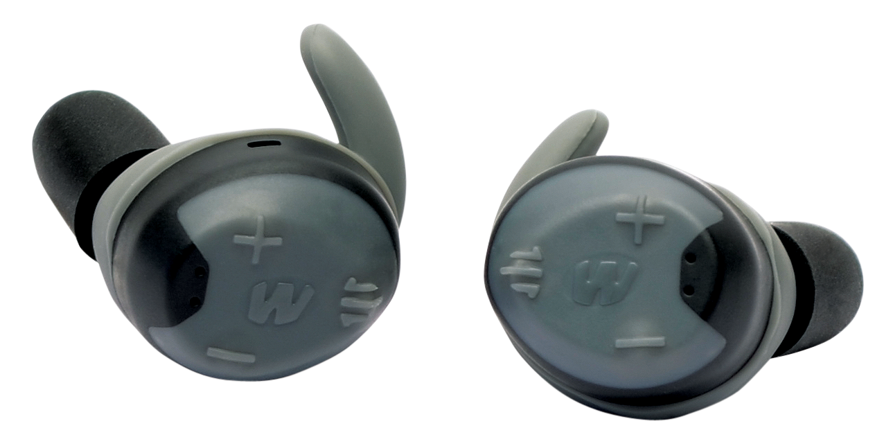 Walker's game ear silencer 2.0 wireless electronic earbuds with a sac (sound activated compression) hearing protection.The earbuds features stable left/right earbud connection; touch button controls; dynamic wind noise reduction; variable gunshot compression; voice prompts and auto shut off.Includes rechargeable lithium battery with a rechargeable lithium battery in dock; micro usb cable and three sizes of sure-lock sizing fins and foam tips.Color: Gray/BlackNrr: 24 dBQuantity: 1...View more