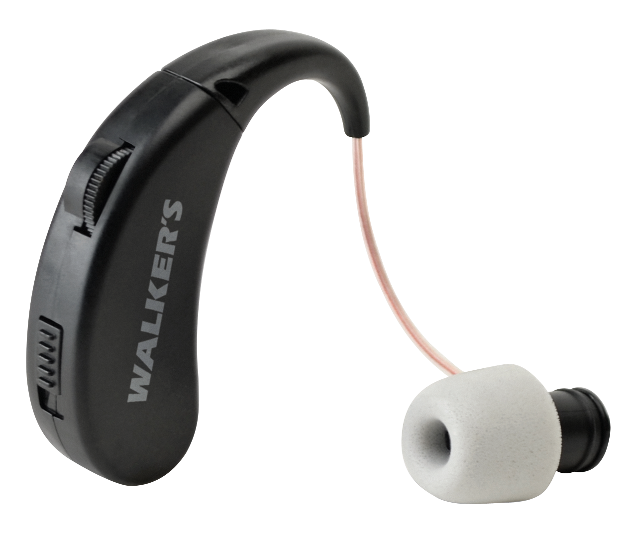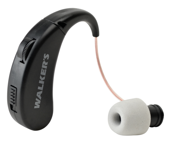 Walker's ultra ear bte hearing enhancer has a lightweight, compact behind-the-ear design that can be used in either ear.It is rechargeable and has a 48 hour battery life on a single charge.The hearing enhancer utilizes an on/off switch and a 22db nrr.Included are three (3) size foam ear tips, three (3) button cell batteries, brush and wax pick/screwdriver, and usb charging cable.