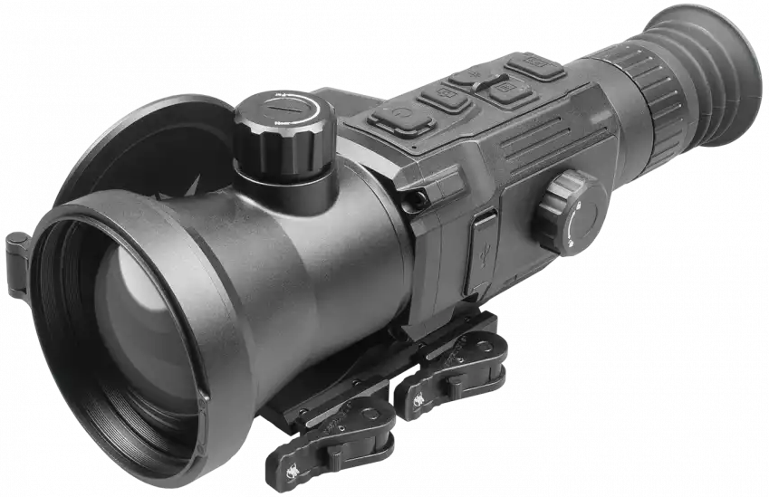 The agm evolver lrf 1280 is now the new apex predator in the field.Providing an unrivaled image quality in compact housing, the evolver lrf is equipping it with a 65mm germanium lens and a 1280x1024 resolution thermal sensor.Its been paired with a fully integrated 1000m laser rangefinder and agms new on-board ballistic calculator.A newly designed eyepiece gives the evolver a very versatile 2.5x base magnification, which can then be digitally zoomed up to 20x on the high end.This means hog hunters will enjoy a base magnification low enough for close range engagements, while predator hunters can comfortably zoom to 5x while still enjoying a crisp 640 resolution before zooming further.Agms powerful new imaging algorithm and new semi-circular display give shooters a feeling of precision and sophistication.Large sturdy buttons were designed to aid gloved fingers in cold winter weather, while the removable rechargeable ne-4400 battery offers current and future agm customers one of the most robust and easy to install battery systems on the market.A full firmware package has been incorporated to allow users an astonishing level of customization: on-board pitch scale, 10 brightness and contrast settings, warm & cold viewing modes, multiple color palettes, manual focus, picture in picture, ballistic calculation, on-board video recording with sound, 1000y/m laser range finding, wifi hotspot, multiple zeroing profiles, shot activated video recording, defective pixel repair, hotspot locator and multiple laser range finding modes.Also included is an american-made adm mounting system.