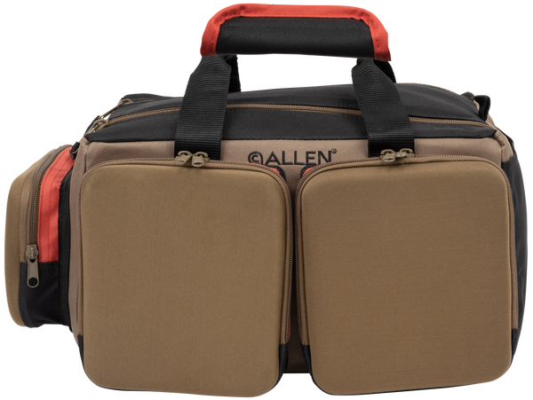 The eliminator rangemaster range bag by allen is the perfect bag choice to haul most all your gear to the range.Designed using a rigid bottom with feet to keep your bag stable and not tip over and spill its contents.This range bag is equipped with multiple exterior pockets to hold ammunition, shooting glasses, choke tubes, and various other gear items you will need to have a great day on the range.The eliminator rangemaster range bag also is equipped with an internal pocket to hold smaller accessories.The included pistol rug will help keep your firearms safe from scratches and scrapes when you are setting up.