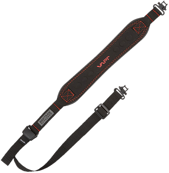 The baktrak vapor rifle sling features a sleek profile which maximizes comfort and reduces weight.It uses a baktrak rubber grip panel and a quick adjust with cam lock buckle.